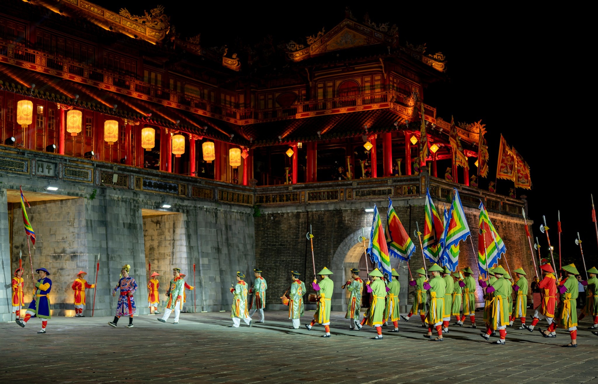 “Hoàng cung huyền ảo” được dàn dựng công phu, khai thác chiều sâu giá trị di sản để “đánh thức” Hoàng cung về đêm. Chương trình mang đến chuỗi hoạt động đặc sắc như lễ đổi gác tại Ngọ Môn, trình diễn ánh sáng kết hợp âm thanh, múa đèn lồng, các hoạt cảnh cung đình, tái hiện lễ thiết triều Triều Nguyễn, thao diễn Kinh binh…