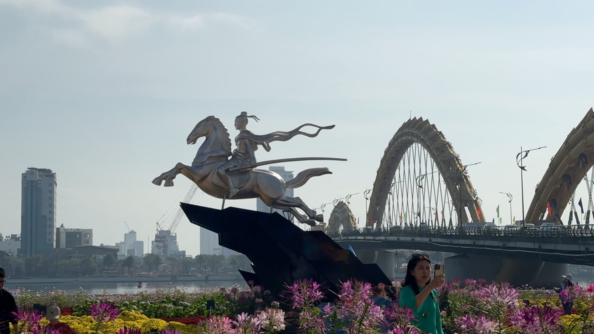 Dọc theo bờ sông, linh vật Kim Mã hợp nhất cũng gây ấn tượng mạnh với sắc vàng nổi bật. Tác phẩm cao gần 4 mét, thân được ghép từ các khối chữ khắc tên thành phố và 94 xã, phường, đặc khu sau sắp xếp đơn vị hành chính. Đây không chỉ là công trình nghệ thuật, mà còn là biểu tượng của tinh thần đoàn kết, gắn bó và sự phát triển đồng bộ của địa phương