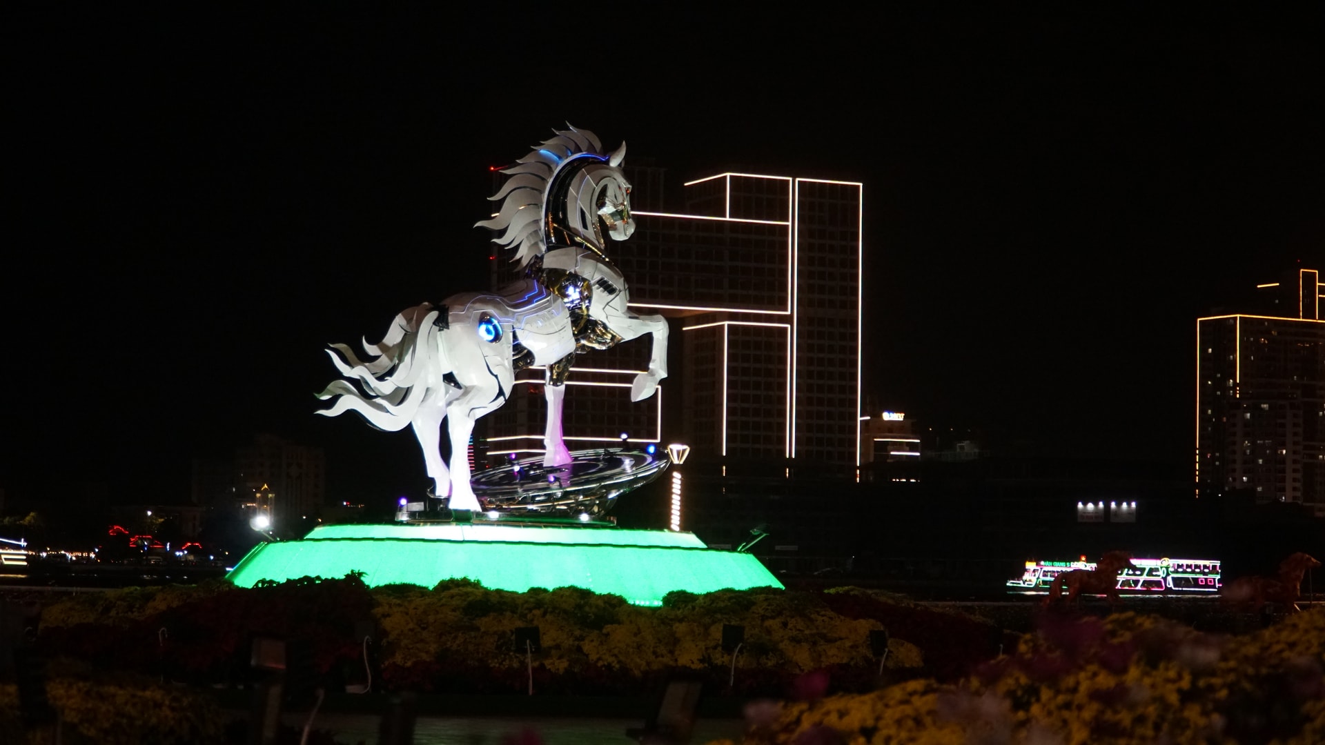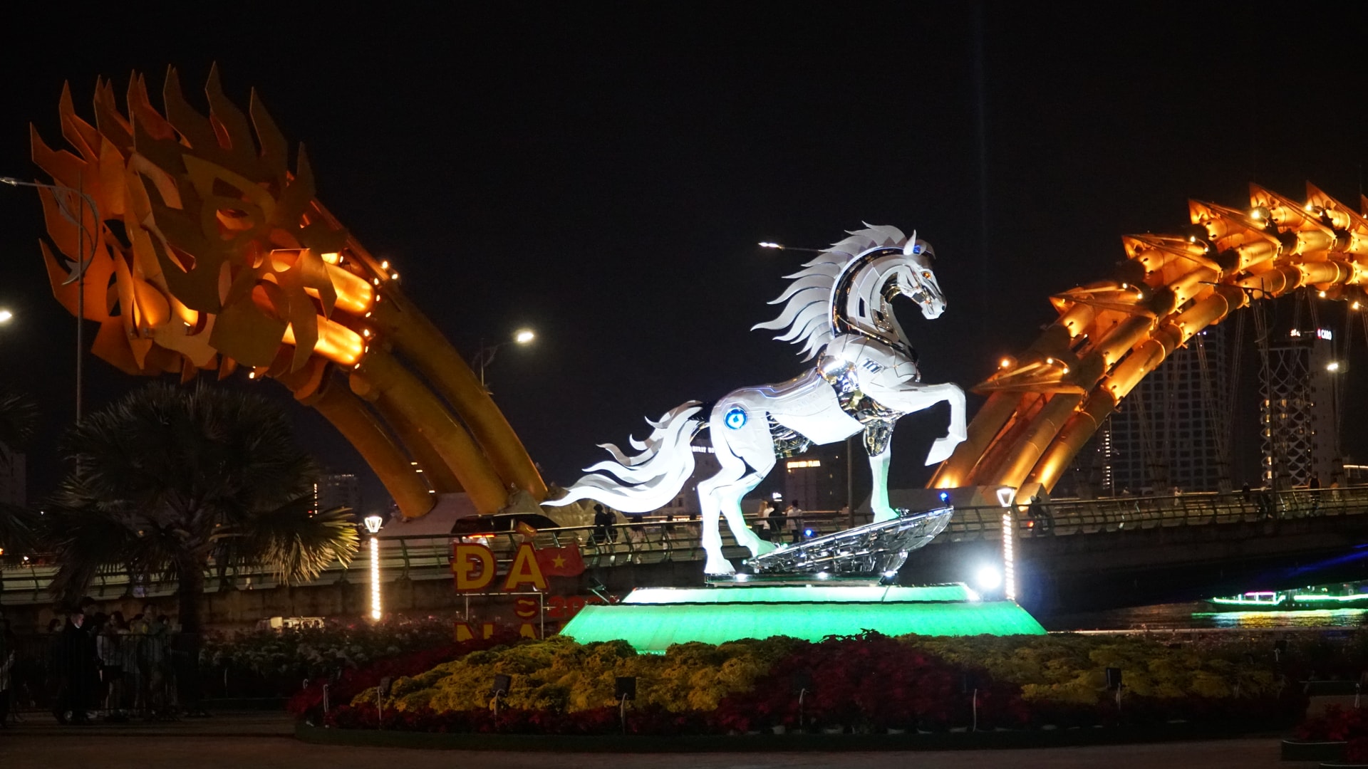 Khi màn đêm buông xuống, tác phẩm khoác lên mình diện mạo khác. Hệ thống ánh sáng nghệ thuật làm nổi bật từng chi tiết, tạo nên hiệu ứng lung linh, huyền ảo. Kim Mã 4.0 trong ánh đèn đêm không chỉ là điểm check-in, mà còn trở thành điểm nhấn cảnh quan, góp phần làm sinh động không gian ven sông Hàn.