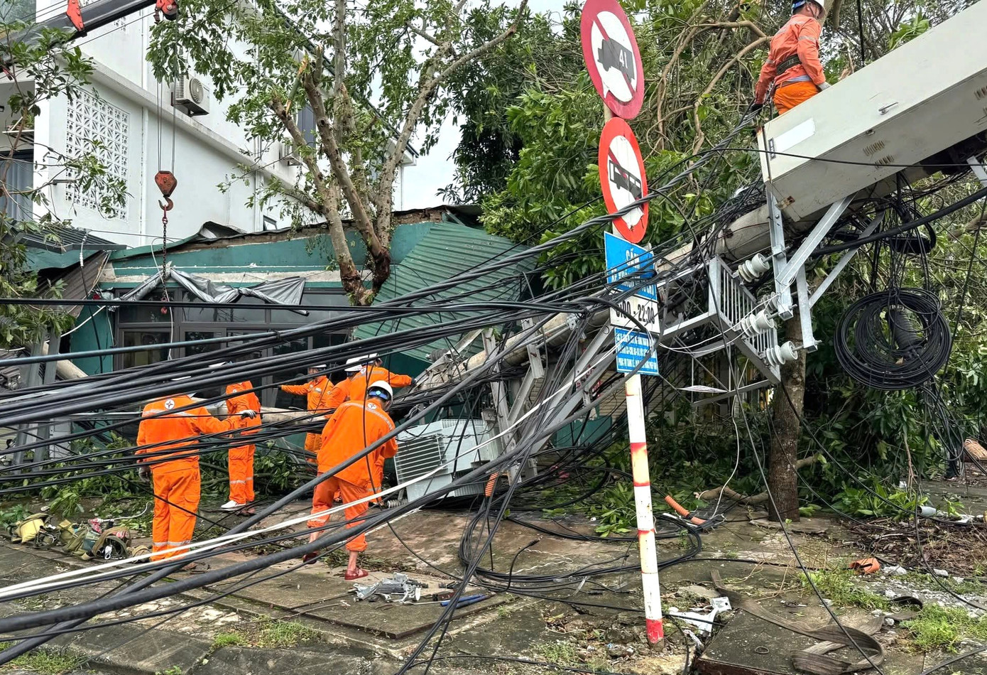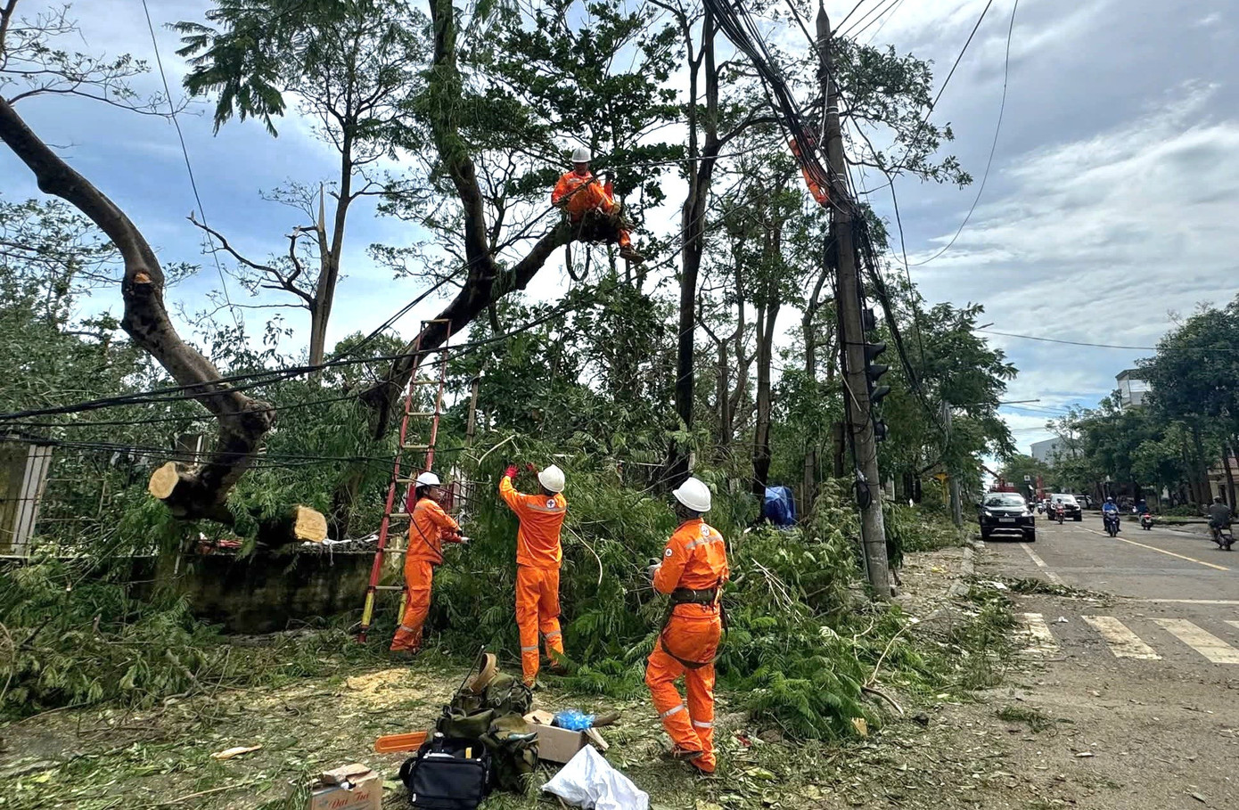Điện lực Nghệ An đang huy động tối đa nhân lực, phương tiện nỗ lực khắc phục hệ thống lưới điện để cung cấp cho người dân trên địa bàn sau bão.