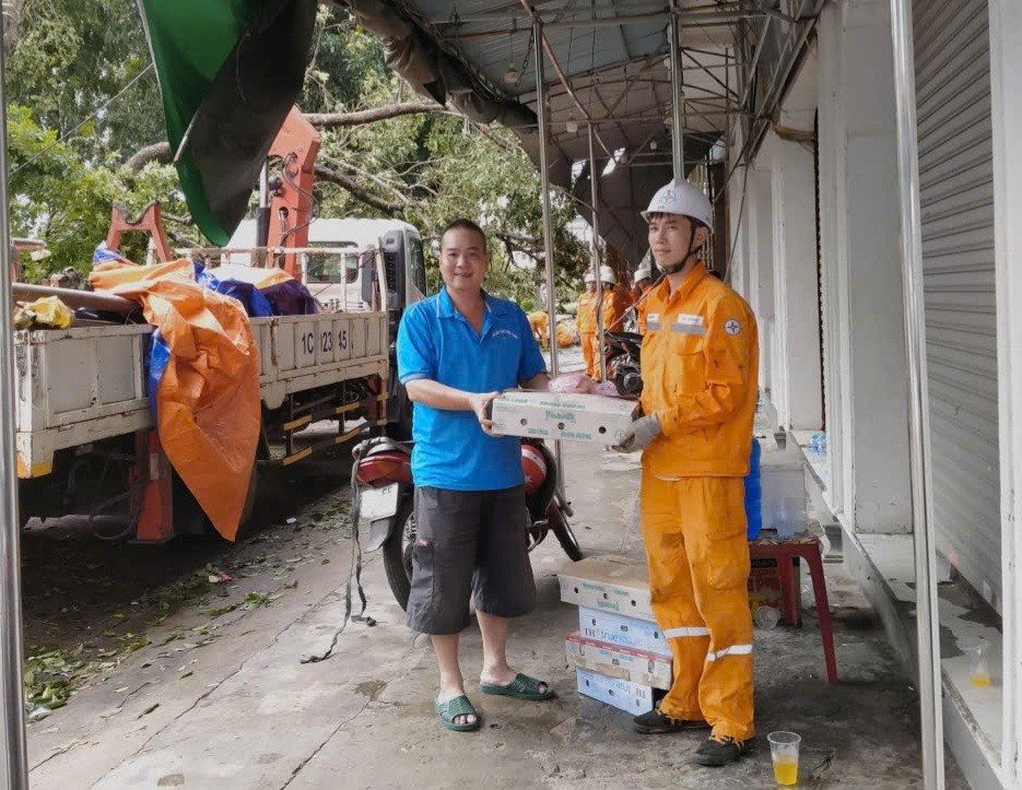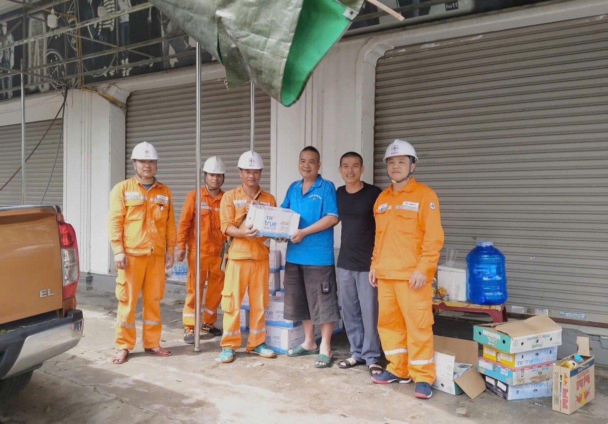 Chứng kiến sự vất vả và nỗ lực của cán bộ công nhân ngành điện với quyết tâm khắc phục xong hệ thống điện sau bão, trưa 30/9, anh Phan Hùng Sơn cùng các tình nguyện viên đã kêu gọi sự hỗ trợ của bạn bè mua nước, sữa… đến tặng, động viên các cán bộ công nhân ngành điện.