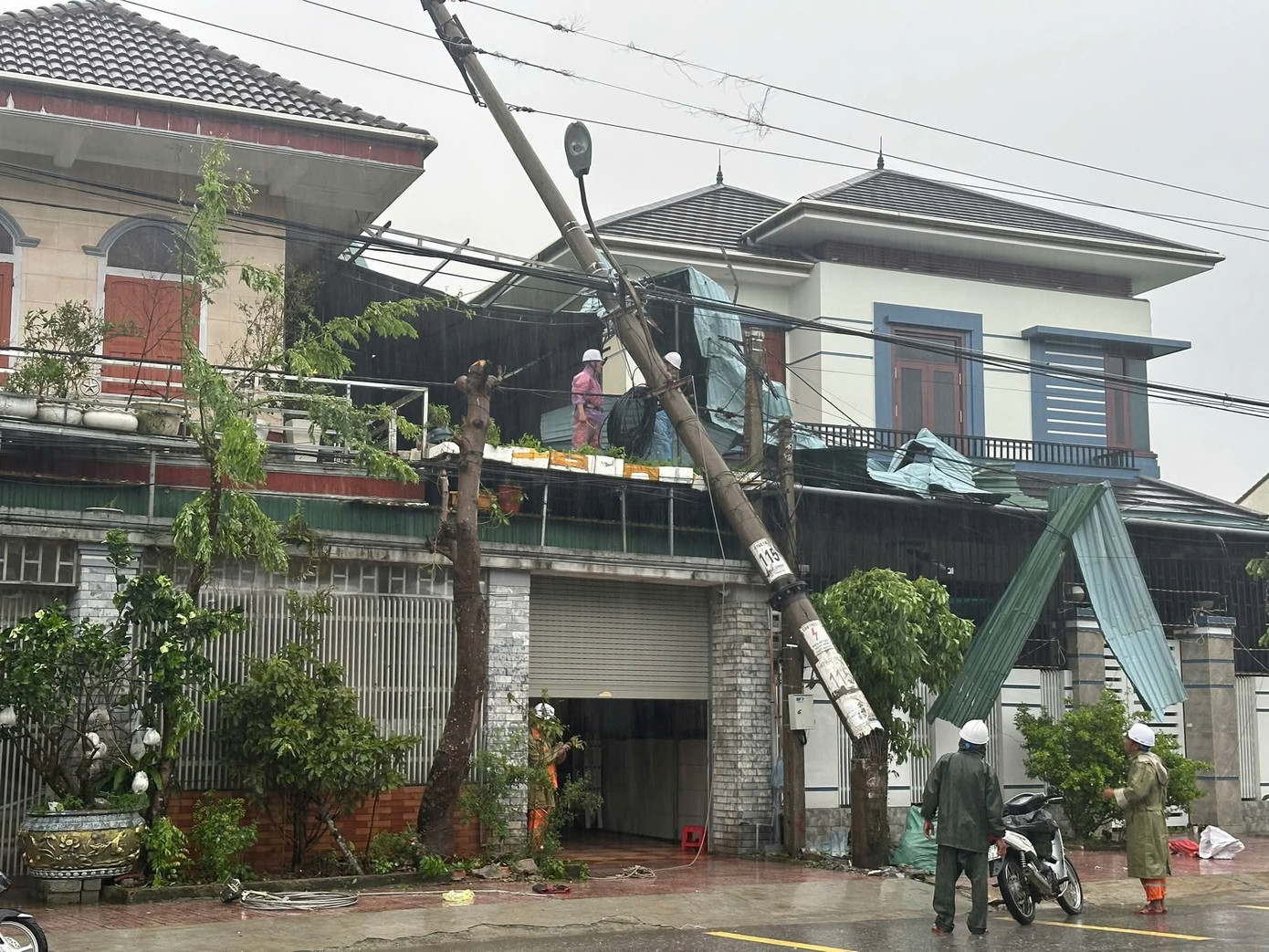 Mái tôn bị gió bão cuốn bay, cây đổ khiến hàng loạt hệ thống dây dẫn bị đổ, đứt gãy gây ra tình trạng mất điện diện rộng.