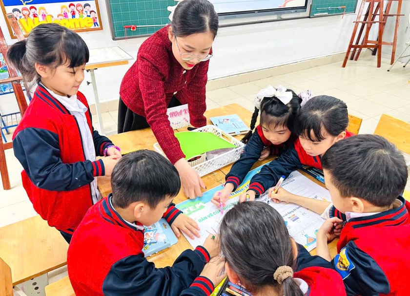 Một tiết học STEM với chủ đề “Cây xung quanh em” của học sinh lớp 1 Trường Tiểu học Hồ Tùng Mậu. Ảnh: Trường Tiểu học Hồ Tùng Mậu