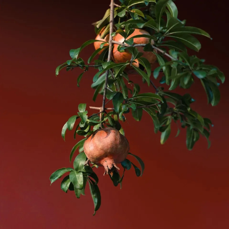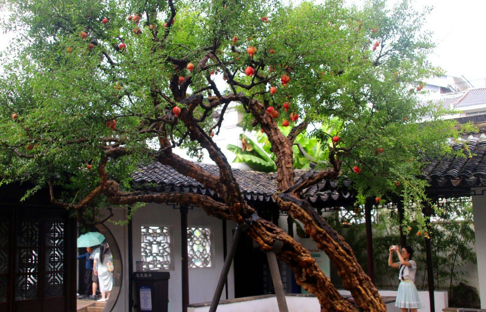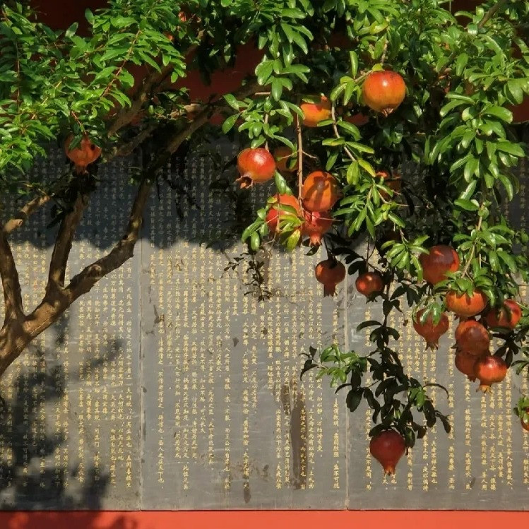 Cây lựu trong đền thờ Tung Trạch. Ảnh: Xiaohongshu/Chen Shiyi