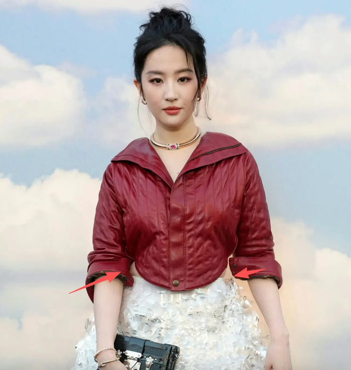 Trong loạt ảnh này Lưu Diệc Phi lộ rõ những khuyết điểm nhỏ so với hình ảnh đã được chỉnh sửa. Chiếc áo da màu đỏ được cho là tạo cảm giác nặng nề, phần eo hở không cân đối trong khi chiếc váy trắng bó sát khiến cô để lộ mỡ thừa.