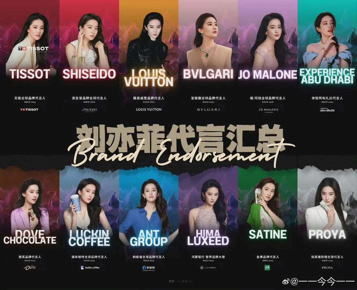 Tổng hợp các nhãn hàng nổi tiếng mà nữ diễn vên đang hợp tác. - Ảnh: Weibo