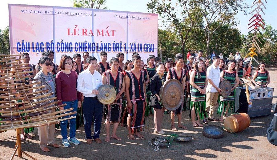 Tại buổi lễ, lãnh đạo UBND xã Ia Grai đã công bố quyết định thành lập CLB cồng chiêng làng Ôrê 1 với sự tham gia của 45 nghệ nhân và những người am hiểu, có kinh nghiệm trong thực hành, truyền dạy cồng chiêng tại cộng đồng.