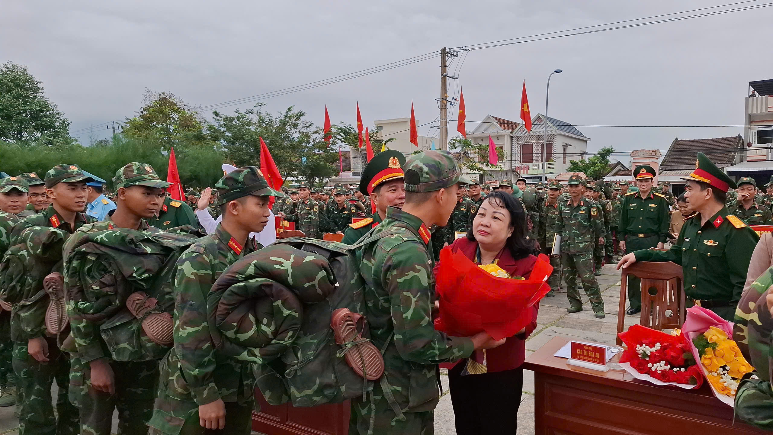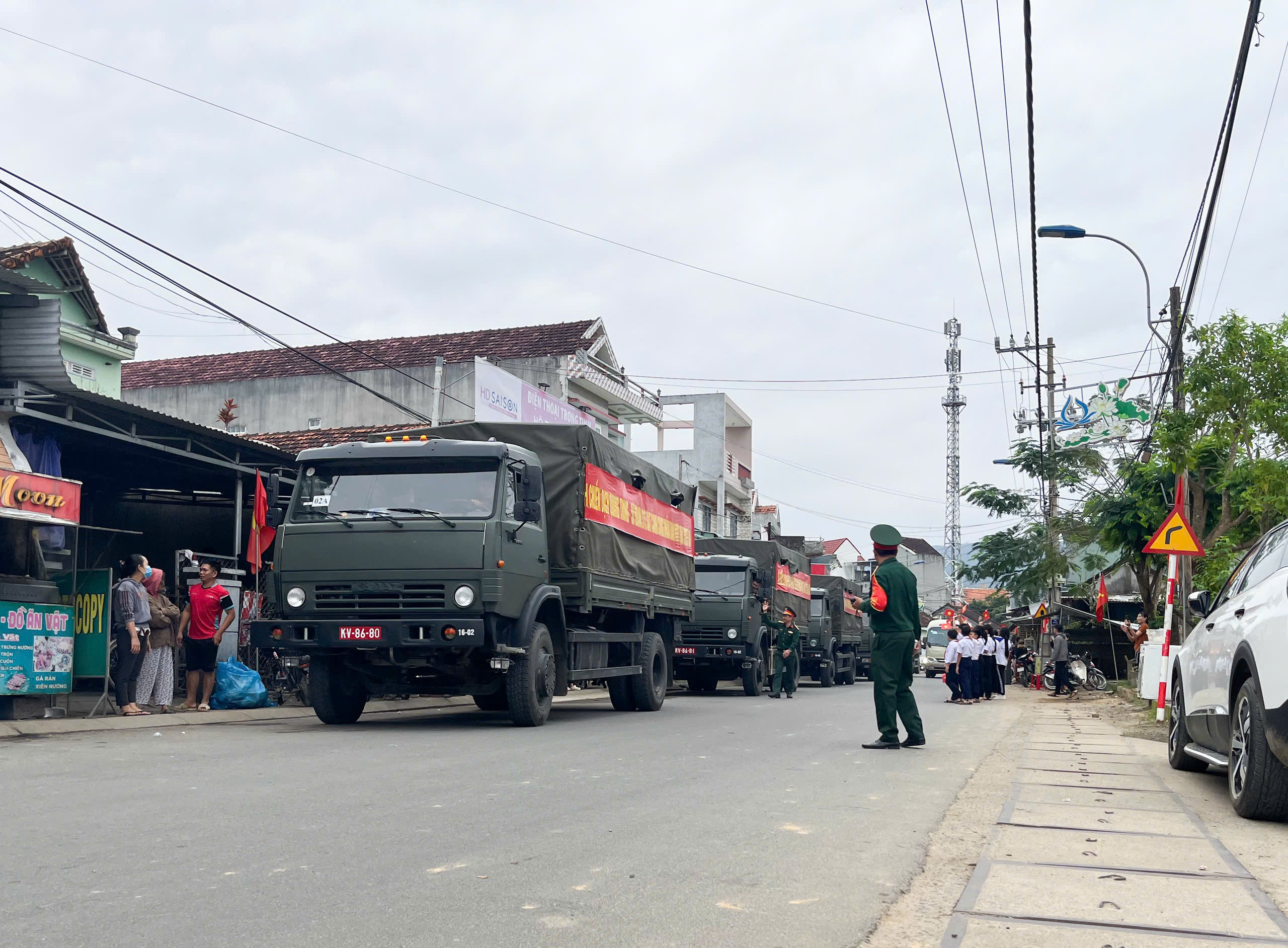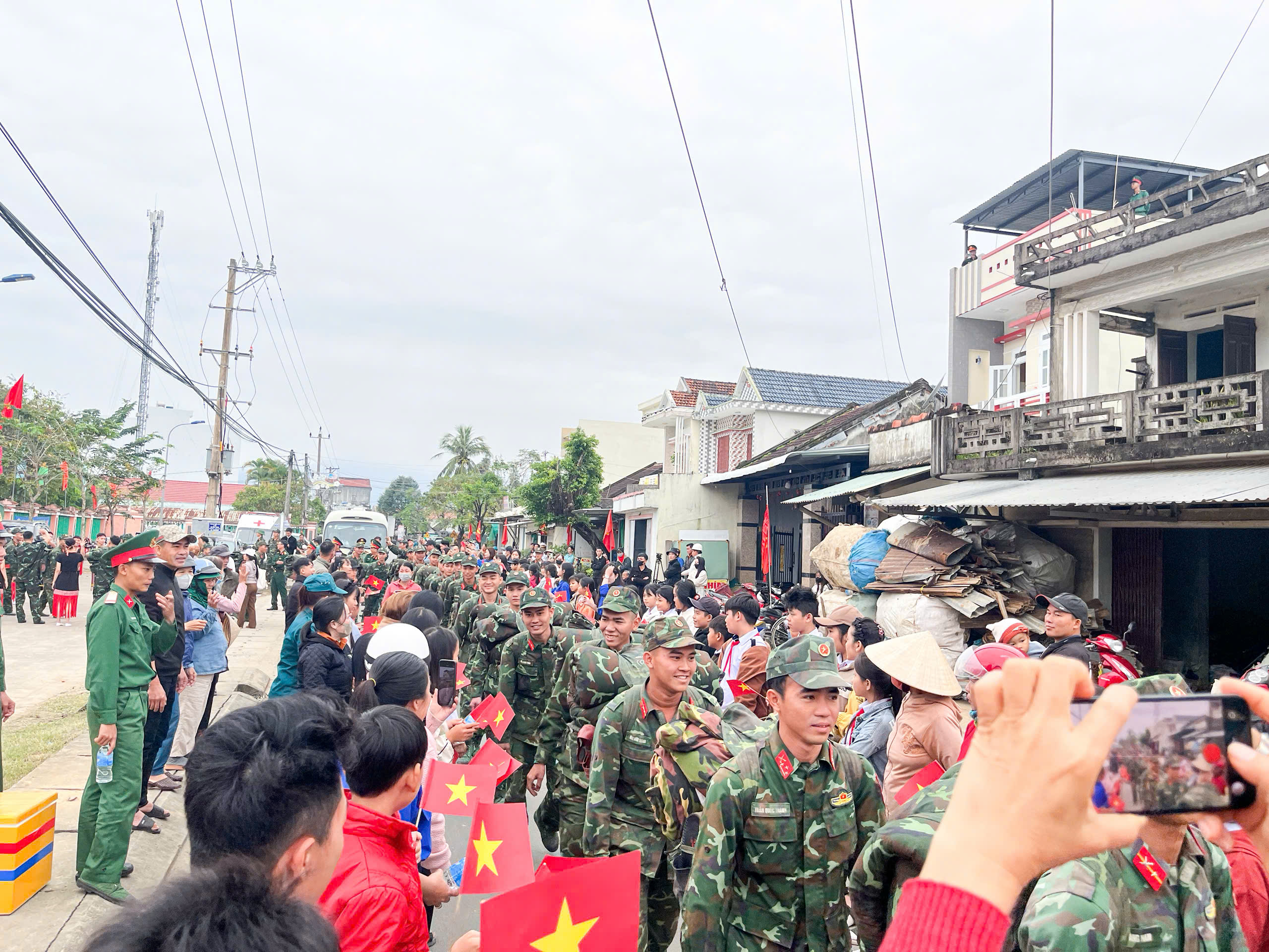 Từ sáng sớm, dọc tuyến đường rời xã Hòa Thịnh, đông đảo người dân đã đứng chờ tiễn các cán bộ, chiến sĩ. Nhiều người xúc động, lưu luyến khi chia tay những người lính đã trực tiếp giúp gia đình mình dựng lại mái ấm sau lũ dữ.