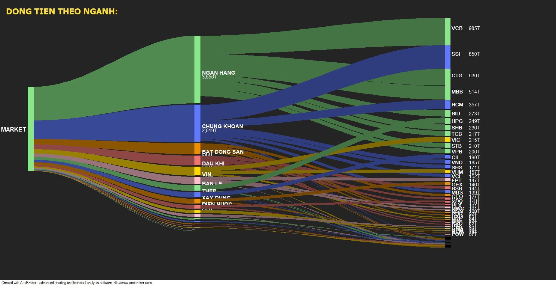 Dòng tiền đang đổ mạnh vào nhóm cổ phiếu ngân hàng.