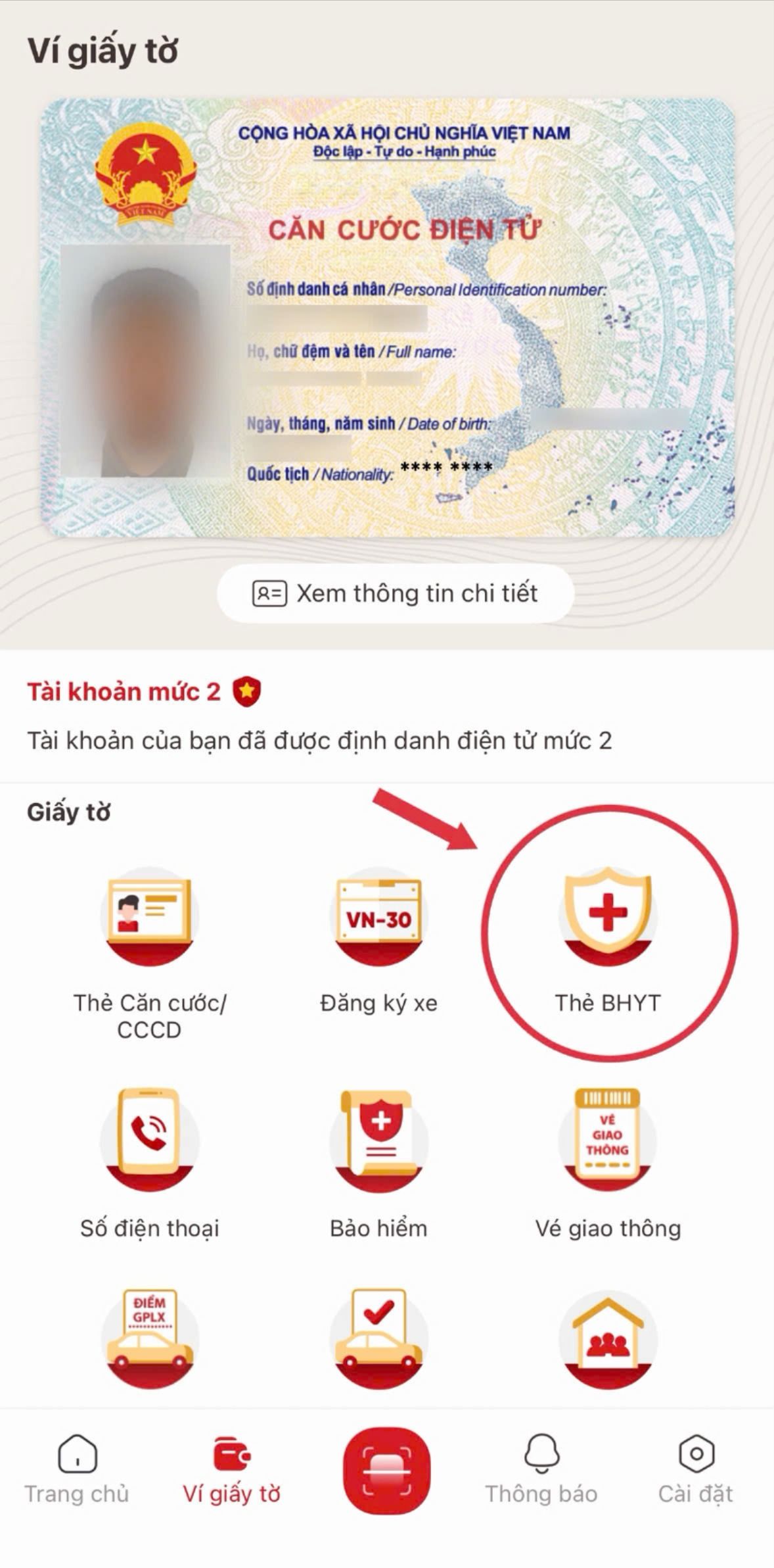 Người tham gia đăng nhập tài khoản, vào mục "Ví giấy tờ", chọn "Thẻ BHYT" để xem thời hạn sử dụng.