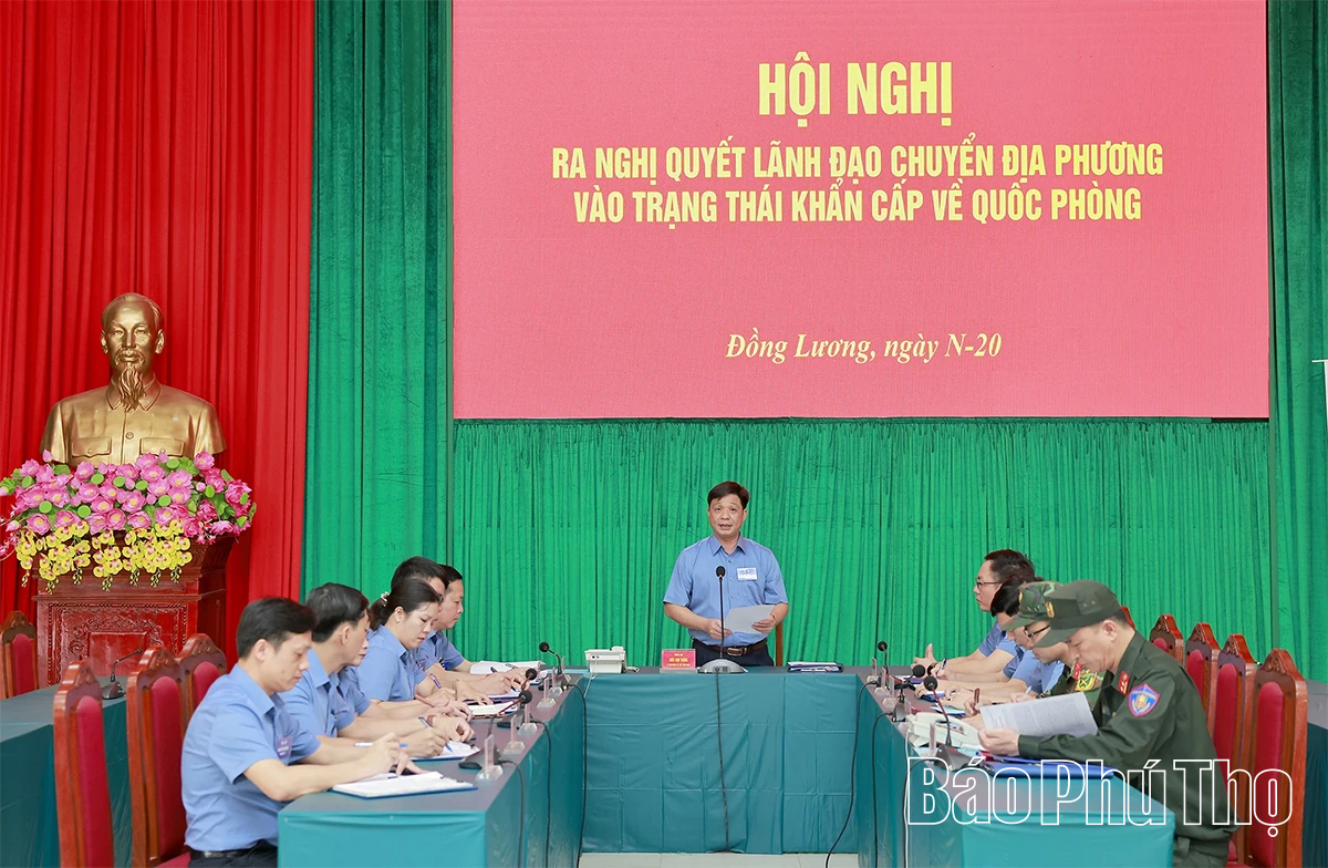 Tình huống diễn tập: Hội nghị Ban Thường vụ Đảng ủy xã Đồng Lương ra Nghị quyết lãnh đạo chuyển địa phương vào trạng thái khẩn cấp về quốc phòng.