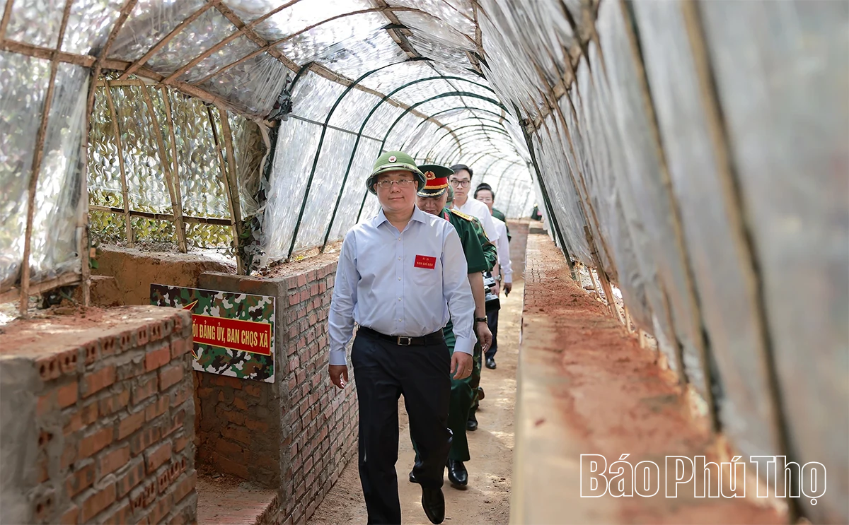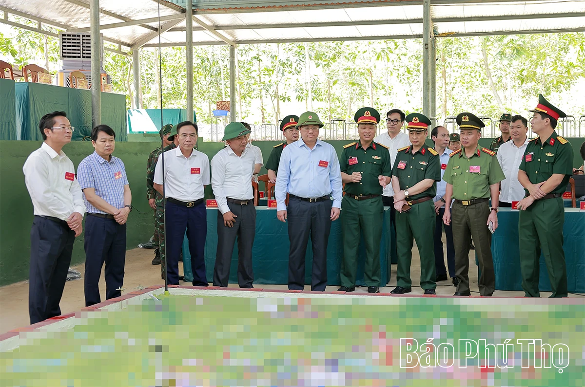Đồng chí Chủ tịch UBND tỉnh Trần Duy Đông cùng các đại biểu thăm, kiểm tra các khu vực diễn tập.