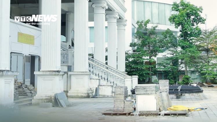 Nhìn ra bên ngoài tòa nhà được sơn trắng khá đẹp nhưng bên trong thì ngổn ngang.