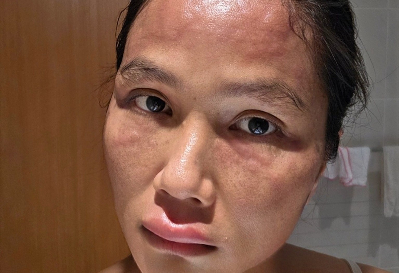 H'Hen Niê bị nổi mề đay sau sinh. Ảnh: FBNV.
