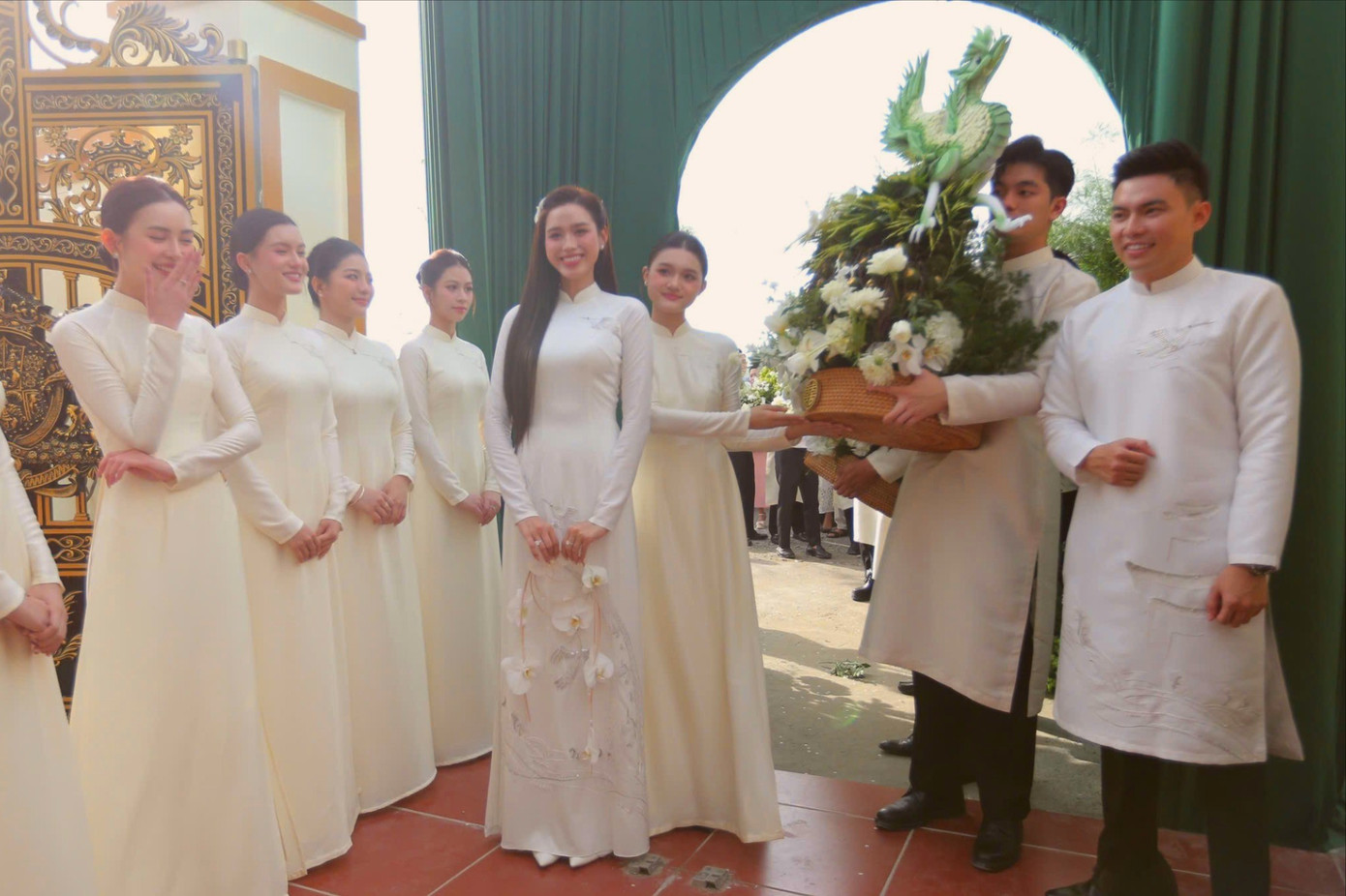 Tại lễ ăn hỏi sáng 16/10 của Hoa hậu Đỗ Thị Hà, dàn phù dâu được dặn dò đi giày thấp. Cô dâu cũng không chọn giày cao gót mà đi giày bệt màu trắng đơn giản. Hình ảnh của cô dâu, chú rể cùng dàn phù dâu thu hút sự chú ý trên mạng xã hội. Khoảnh khắc Đỗ Thị Hà sánh vai với chồng được khen tinh tế, ngọt ngào.