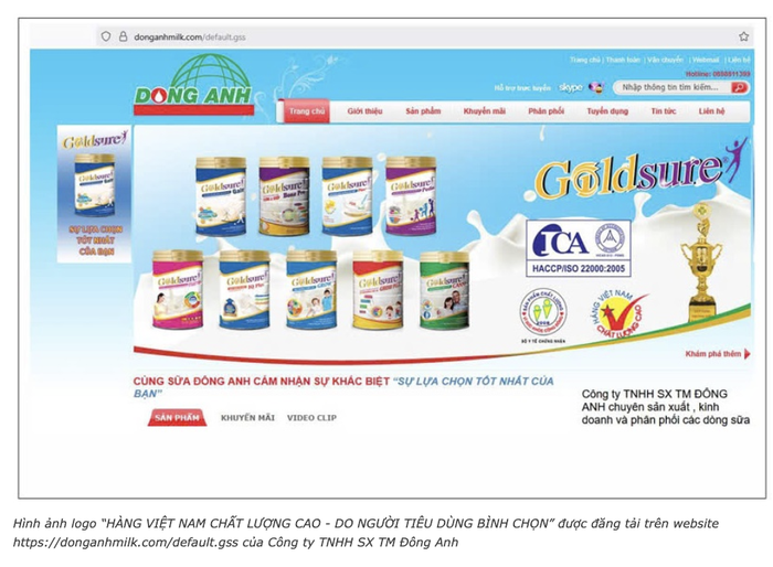 Hội Doanh nghiệp Hàng Việt Nam chất lượng cao yêu cầu Công ty TNHH sản xuất Thương mại Đông Anh ngay lập tức chất dứt hành vi sử dụng Nhãn hiệu. Ảnh: Chụp màn hình vào cuối giờ chiều ngày 28/10, đến nay (30/10) đã bị gỡ trên website.