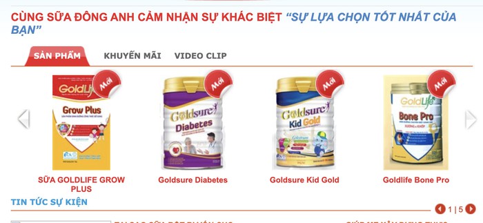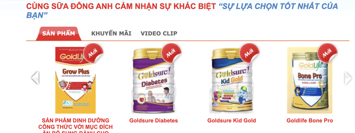 Tuy nhiên, đến ngày 28/10, trên website "https://donganhmilk.com/default.gss" của Công ty TNHH sản xuất Thương mại Đông Anh lại ghi dưới sản phẩm là "Sữa GOLDLIFE GROW PLUS".