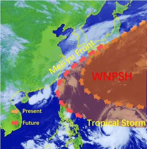 Áp cao cận nhiệt đới Tây Bắc Thái Bình Dương là hệ thống lưu thông chi phối vị trí dải mưa và hướng di chuyển của các cơn bão nhiệt đới. Ảnh: CHEN Xiaolong.