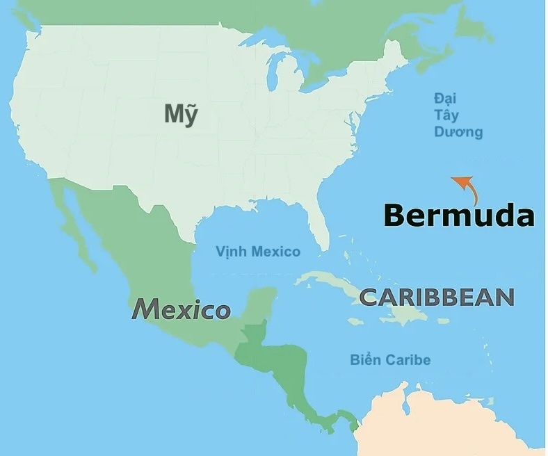 Bản đồ khu vực Đại Tây Dương có Mỹ, Vịnh Mexico, vùng Caribe và quần đảo Bermuda. Ảnh: World Atlas.