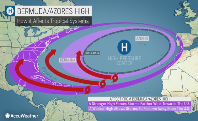 Áp cao Bermuda mạnh đồng nghĩa sẽ giữ cơn bão ở phía nam lâu hơn, đẩy nó đi sâu hơn về phía tây và đe dọa đất liền của Mỹ.