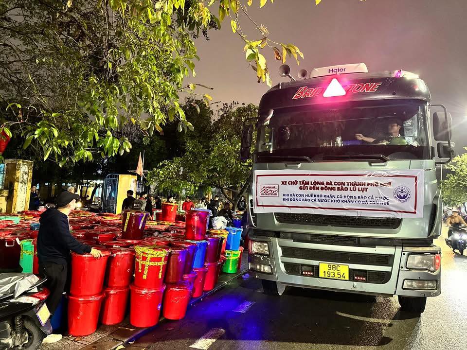 Theo đó, dù vừa hứng chịu liên tiếp 4 trận lũ lớn, người dân và các tổ chức tại TP Huế vẫn nhanh chóng thiết lập điểm tập kết, hướng về đồng bào các tỉnh Nam Trung Bộ. Cụ thể, Đội SOS 75 Huế thực hiện hai chuyến xe với tổng trọng lượng hơn 300 tấn, trao quà tại 20 điểm thuộc 9 xã của tỉnh Đắk Lắk.