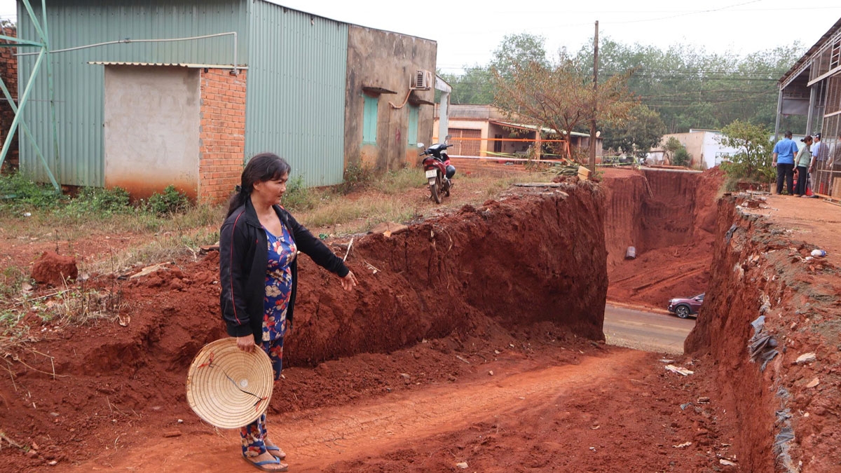 Do công tác giải phóng mặt bằng chưa hoàn tất, diện tích thi công bị thắt nút cổ chai, tạo thành những vực sâu sát vách nhà dân. Nguy cơ sạt lở nghiêm trọng đã trực tiếp đe dọa đến tài sản và tính mạng của 8 hộ gia đình tại khu vực này.