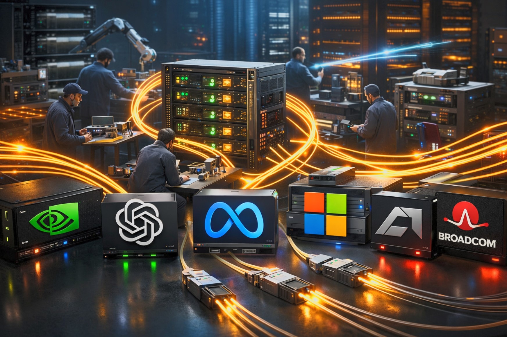 AMD, Broadcom, Microsoft, Meta Platforms, Nvidia và OpenAI cùng xây dựng một chuẩn kết nối quang học mở cho các hạ tầng AI quy mô lớn - Ảnh: MTG