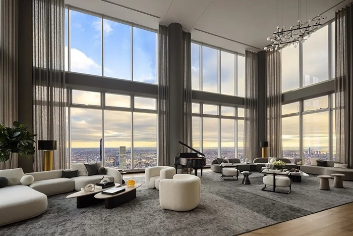 Căn penthouse trên đỉnh tòa nhà dân cư cao nhất thế giới Central Park Tower ở New York (Mỹ) thu hút sự chú ý khi được niêm yết với giá 250 triệu USD (tương đương hơn 6.500 tỷ đồng). Ảnh: CNBC