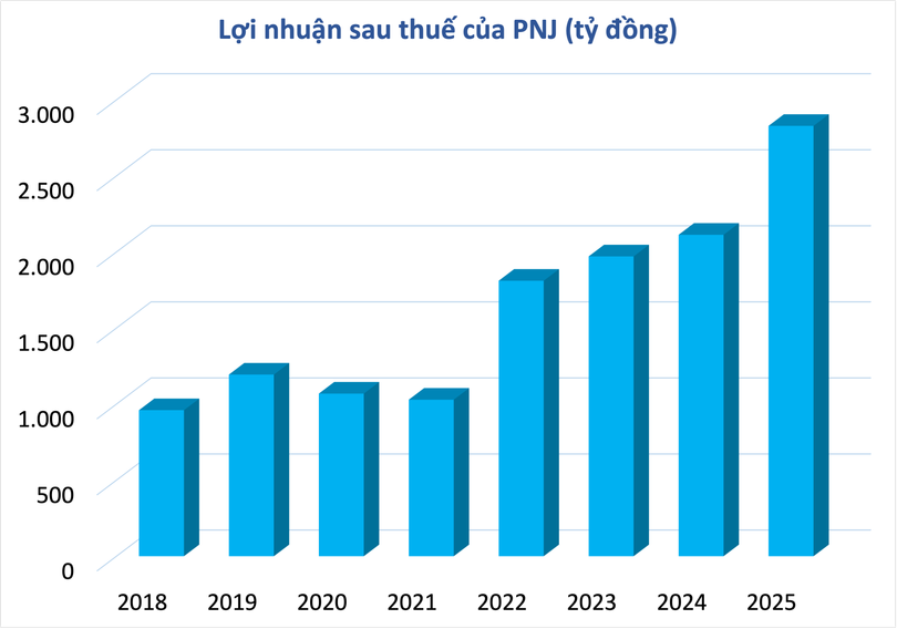 Công ty báo lãi sau thuế 2.829 tỷ đồng, tăng 34% so với năm 2024, đây cũng là năm lãi kỷ lục của doanh nghiệp. Như vậy, tính trung bình mỗi ngày PNJ lãi hơn 7,7 tỷ đồng.