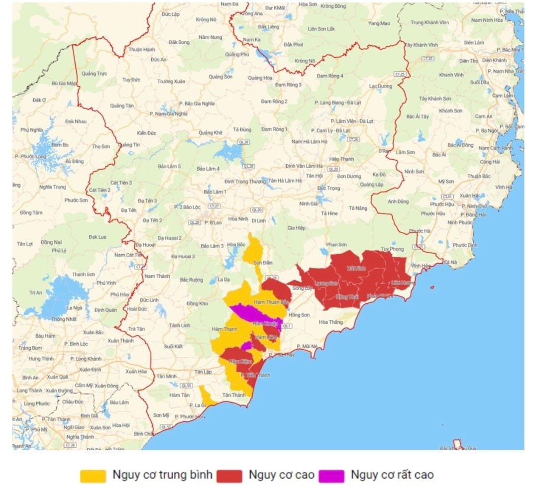 Bản đồ nguy cơ lũ quét, sạt lở đất đá khu vực tỉnh Lâm Đồng.