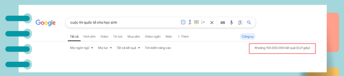Khi tìm kiếm từ khóa các cuộc thi quốc tế dành cho học sinh, công cụ trả về khoảng 150 triệu kết quả trong vòng 0,21 giây. Có thể thấy, các cuộc thi có yếu tố "quốc tế" vẫn luôn có sức nóng đối với học sinh, phụ huynh Việt Nam.