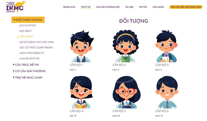 Bên cạnh đó, đối tượng tham gia cuộc thi này "trải rộng" từ học sinh lớp 1 cho đến lớp 12 với 6 cấp độ khác nhau, tùy theo khối lớp.