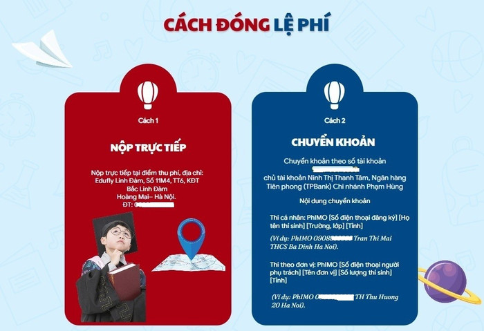 Với cuộc thi này, thí sinh đóng lệ phí chuyển khoản vào tài khoản cá nhân, mà không phải đơn vị, tổ chức.