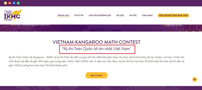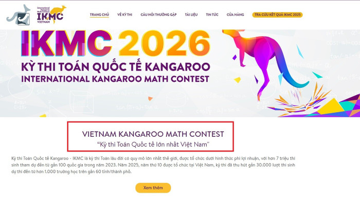 Theo thông tin giới thiệu trên website quảng bá kỳ thi Toán Quốc tế Kangaroo - IKMC (International Kangaroo Math Contest) là "Kỳ thi Toán quốc tế lớn nhất Việt Nam".