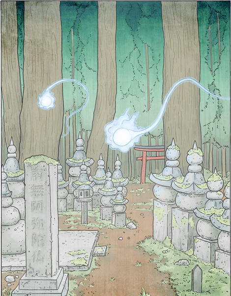 Tranh vẽ ma trơi (hitodama) Nhật Bản.