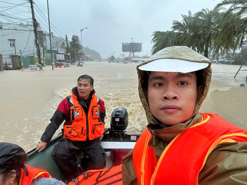 Sáng 18/11, khi anh Lương Vĩnh Long Nhật rời nhà ở làng cổ Phước Tích (phường Phong Điền, TP Huế), nước ngập tới thềm. Nhưng nghe tin mưa lớn kéo dài ở Quảng Nam, Quảng Ngãi và nhiều nơi đang cầu cứu, anh lập tức đáp lời đội SOS 38 Hà Tĩnh, lên đường vào tâm lũ.