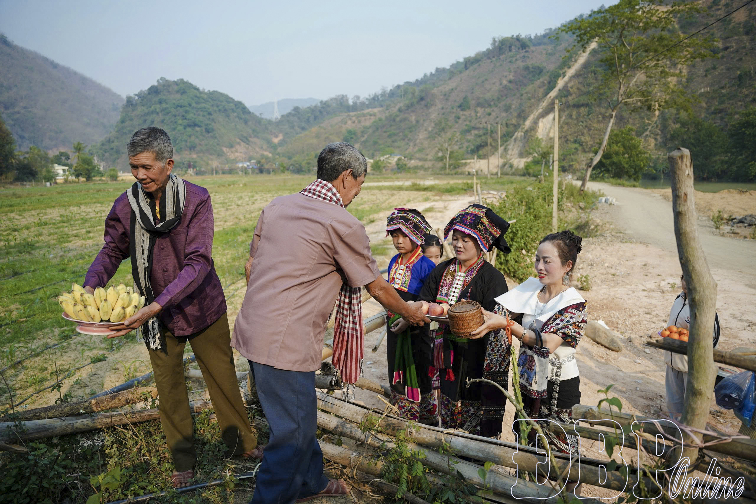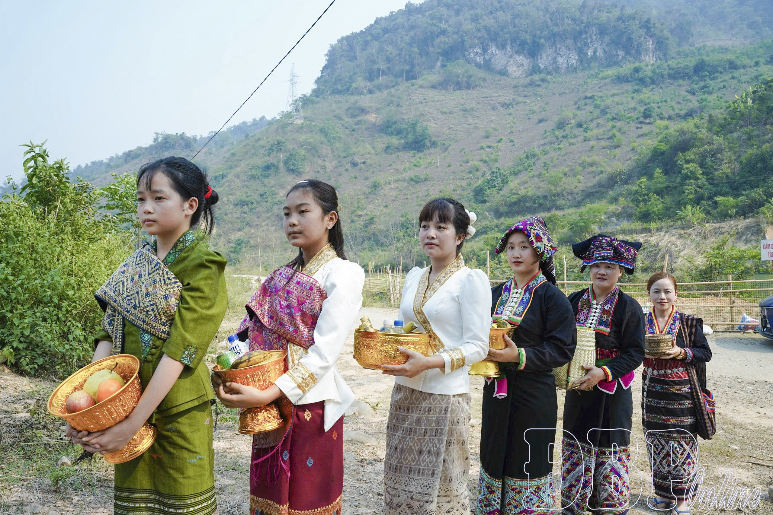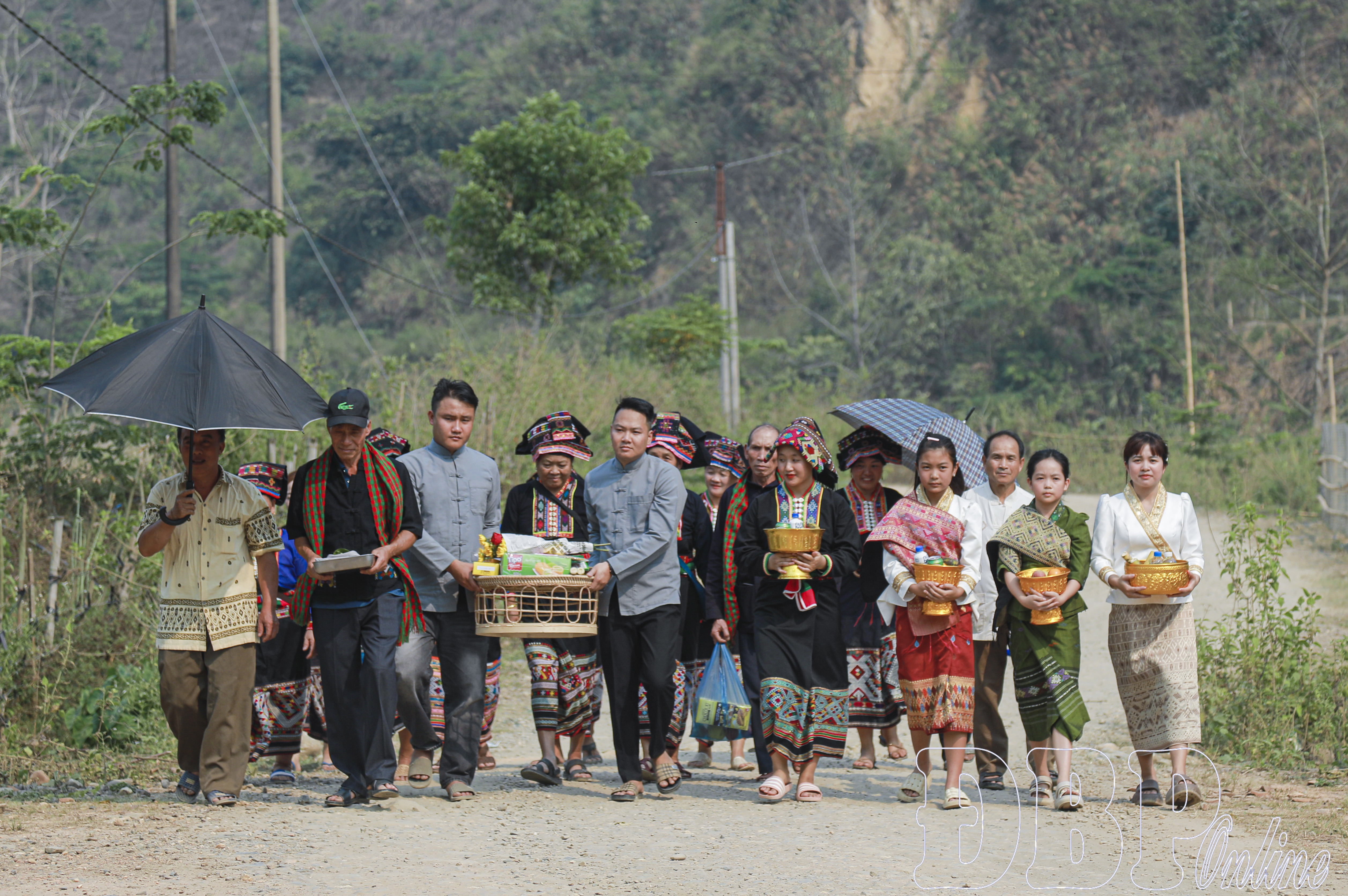Sau khi đã chuẩn bị xong mâm lễ, người già, người trẻ, đàn ông, phụ nữ rước lễ vật về nơi cúng của bản, được đặt ở cây cổ thụ gần suối. Hình ảnh nhiều thế hệ tham gia tạo nên sự gắn kết cộng đồng rõ nét. Khi vào gần khu vực cúng, phụ nữ chuyển lễ vật cho nam giới để thực hiện nghi lễ.