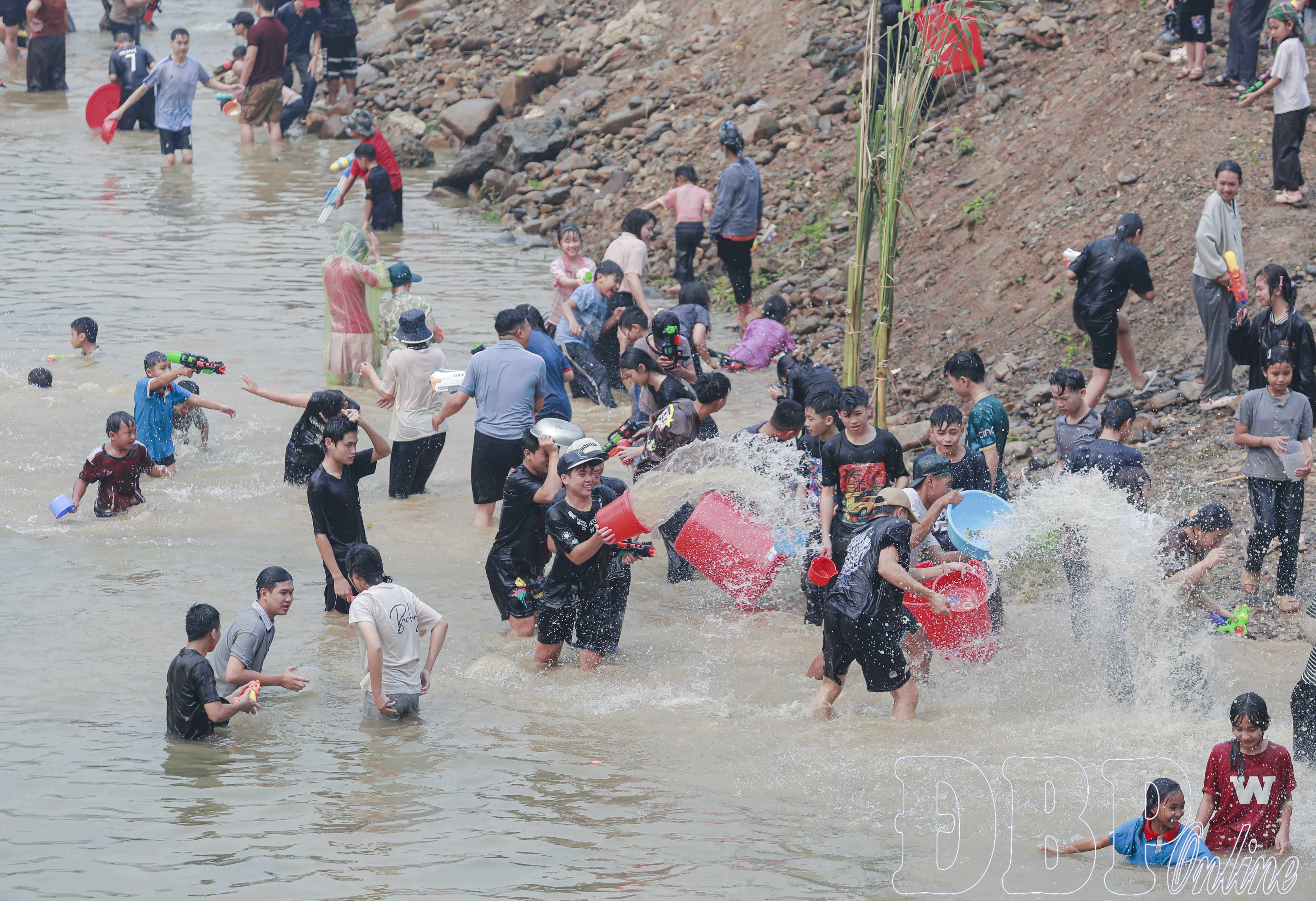 Người dân, du khách vui Tết té nước sau lễ Khăm bản tại Pa Xa Lào.