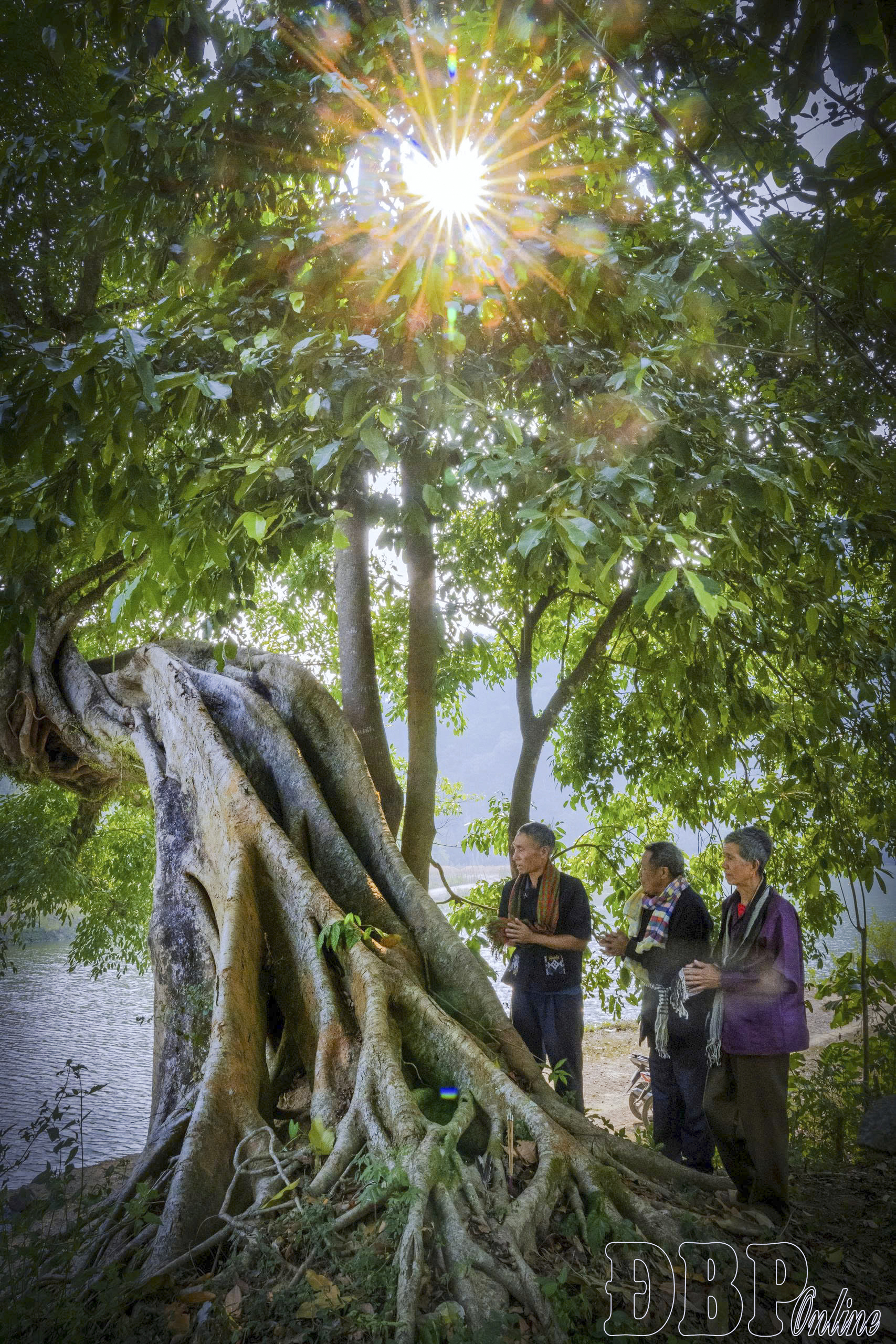 Khu vực thờ cúng chung của bản (Thiêng Lông) được dựng dưới cây cổ thụ gần suối.