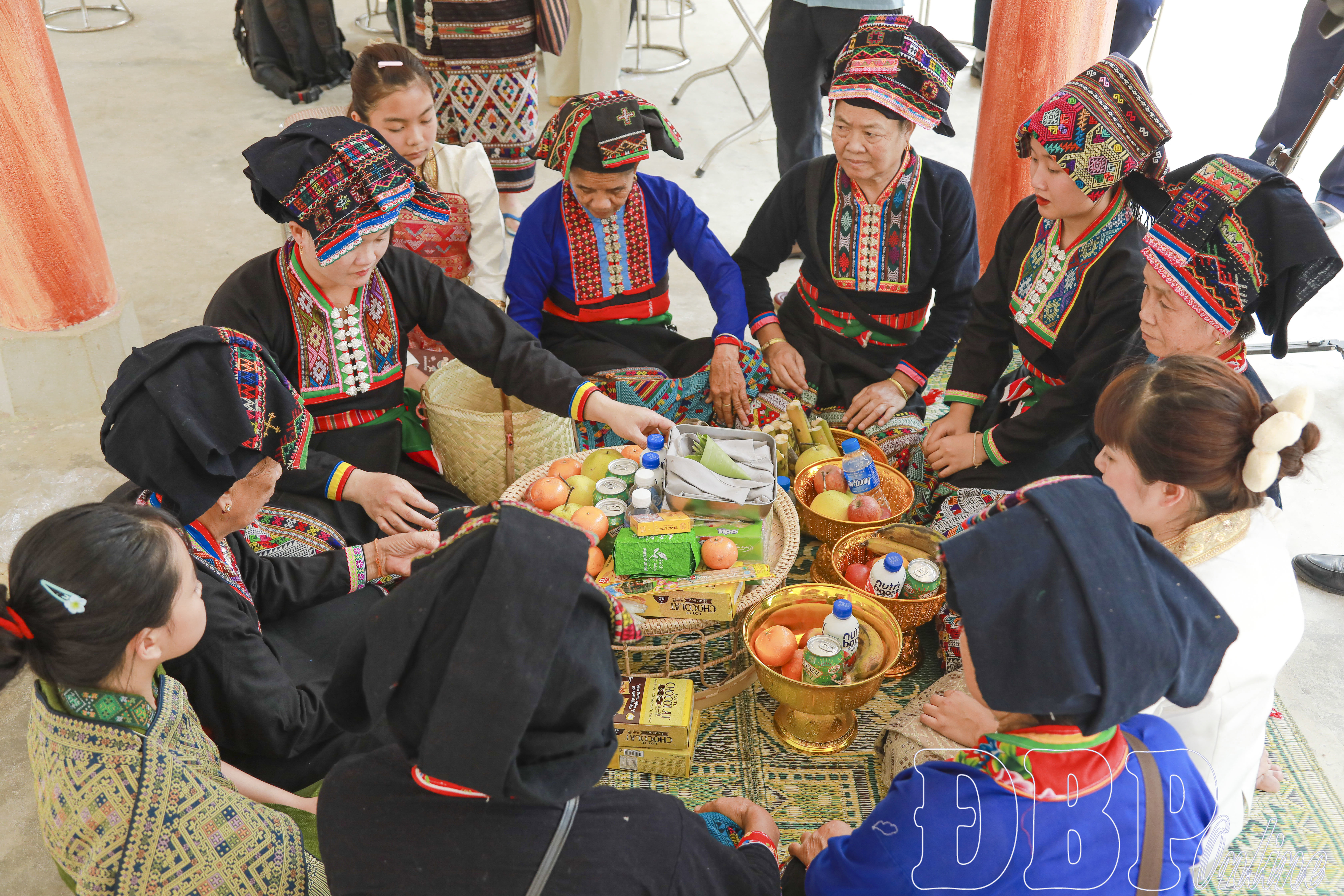 Phụ nữ chuyển lễ vật cho nam giới để thực hiện nghi lễ.