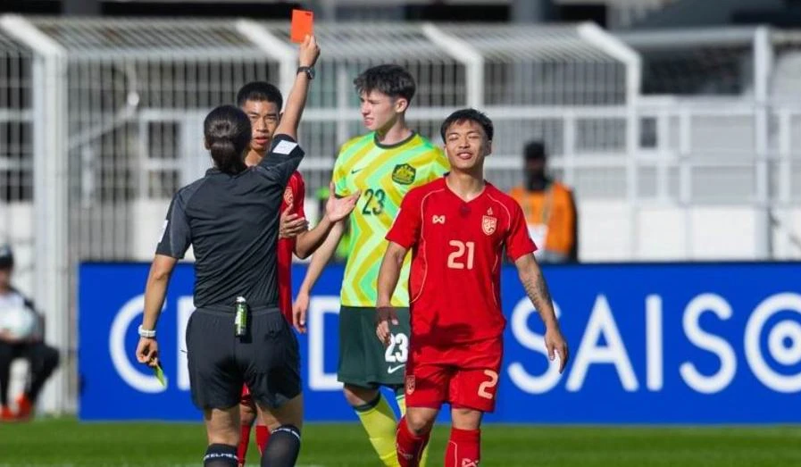 U-23 Thái Lan thể hiện rất cẩu thả tại giải U-23 châu Á qua trận thua Úc 1-2 trong thế dẫn bàn trước. Ảnh: AFC.