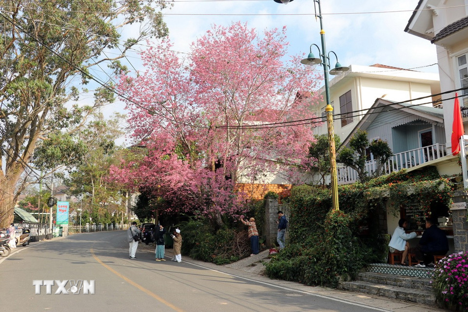 Mai anh đào là giống cây rừng, được đưa về trồng trên đường phố Đà Lạt làm cảnh từ nhiều thập kỷ trước. (Ảnh: Chu Quốc Hùng/TTXVN)