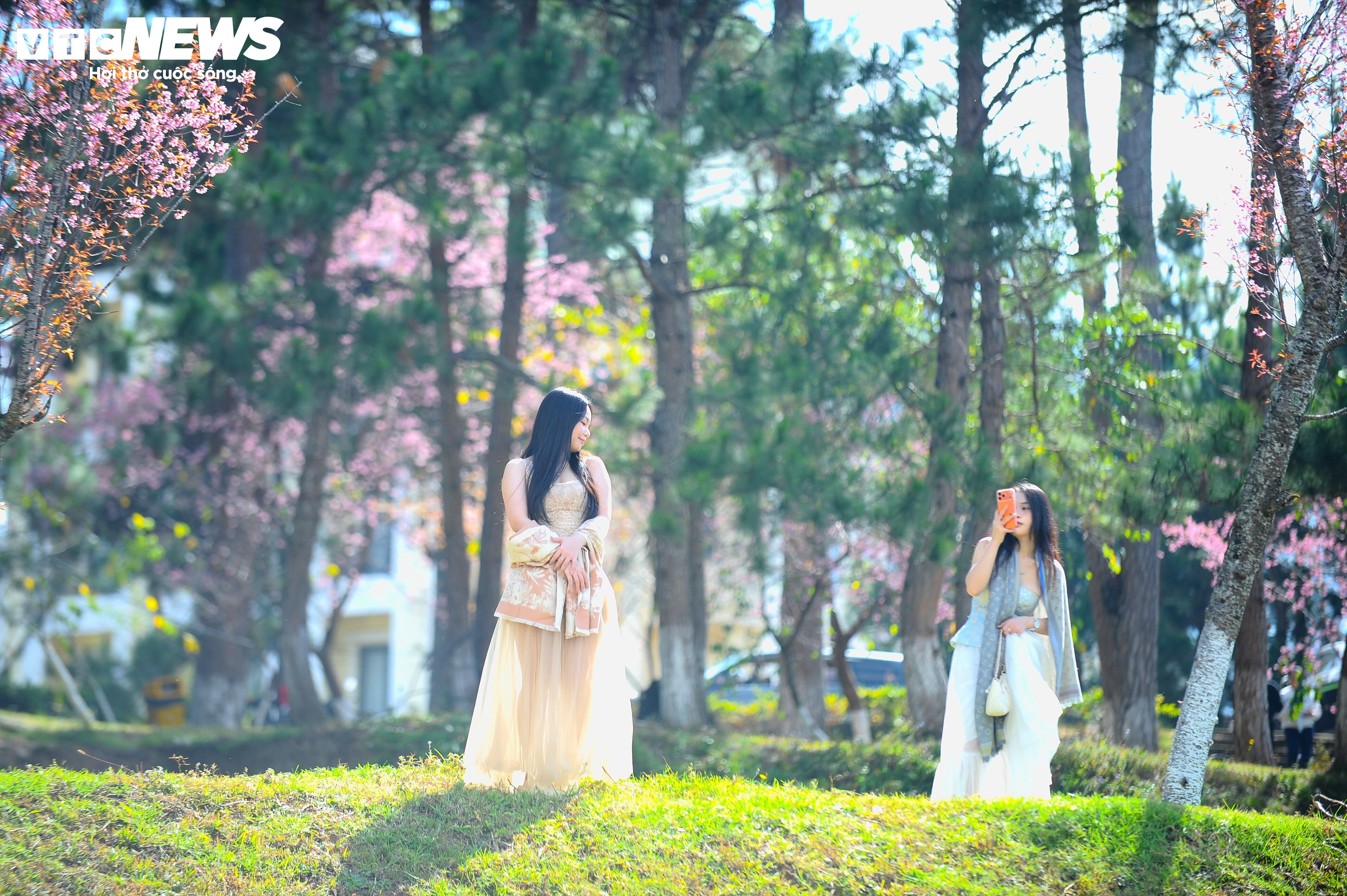 Với thời tiết đẹp, nắng ráo như hiện nay, du khách dễ dàng có được những hình ảnh đẹp với hoa mai anh đào tại Đà Lạt.