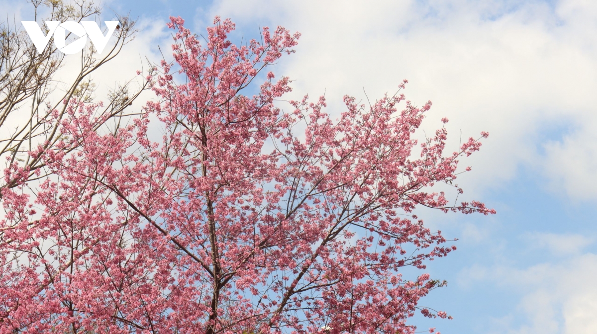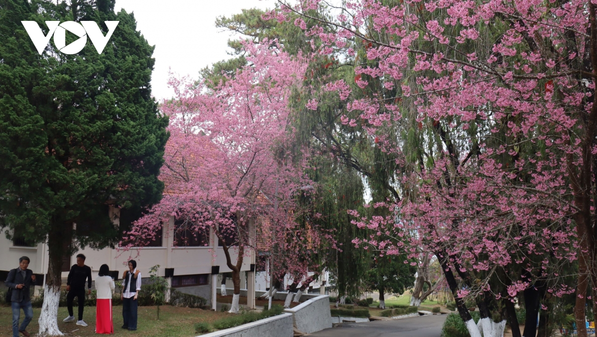 Mai anh đào nở rộ mang lại không gian xanh, yên bình giữa lòng đô thị Đà Lạt.