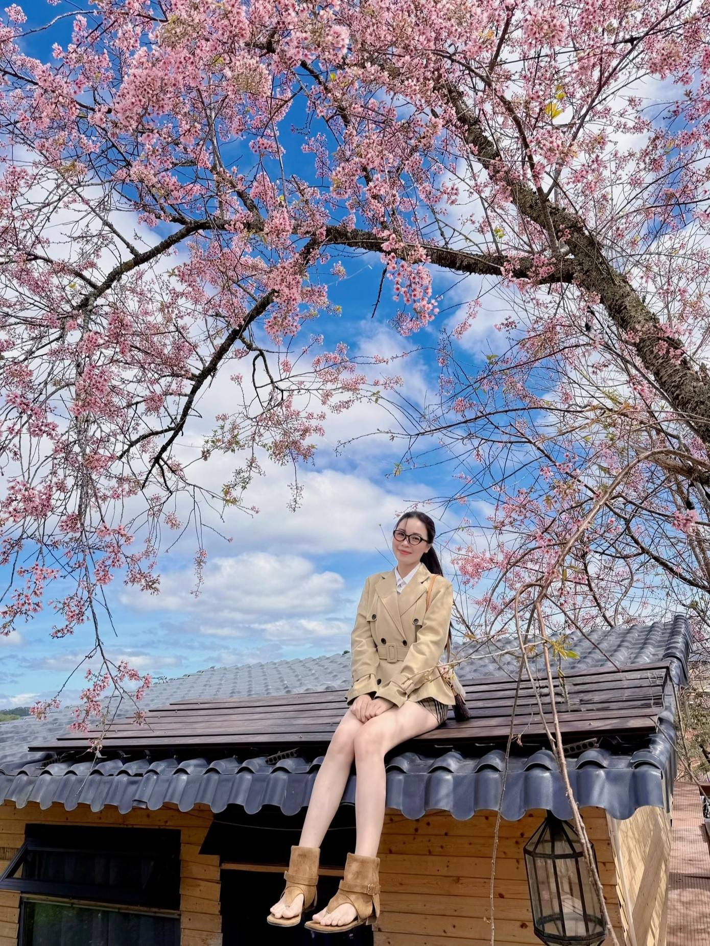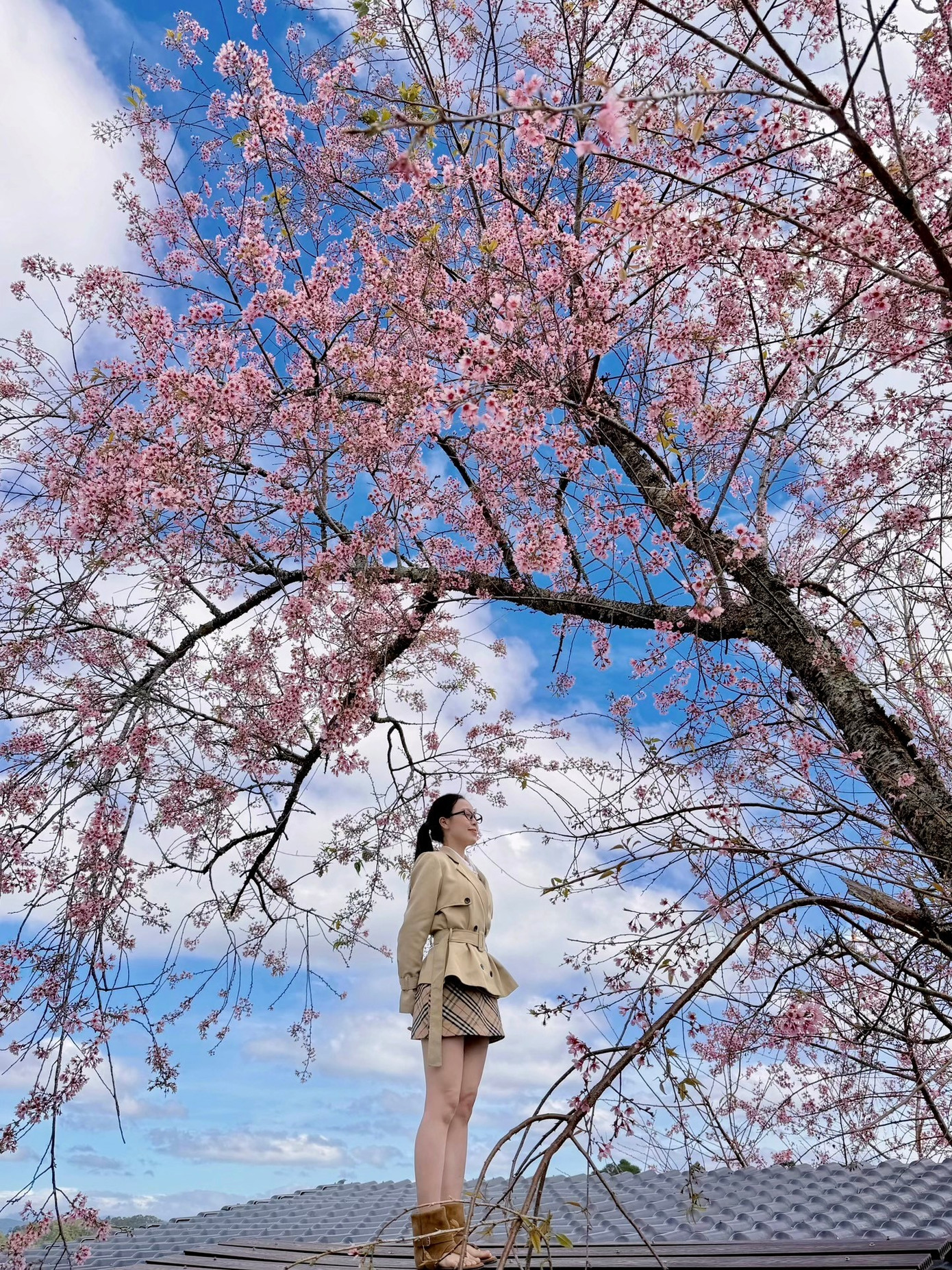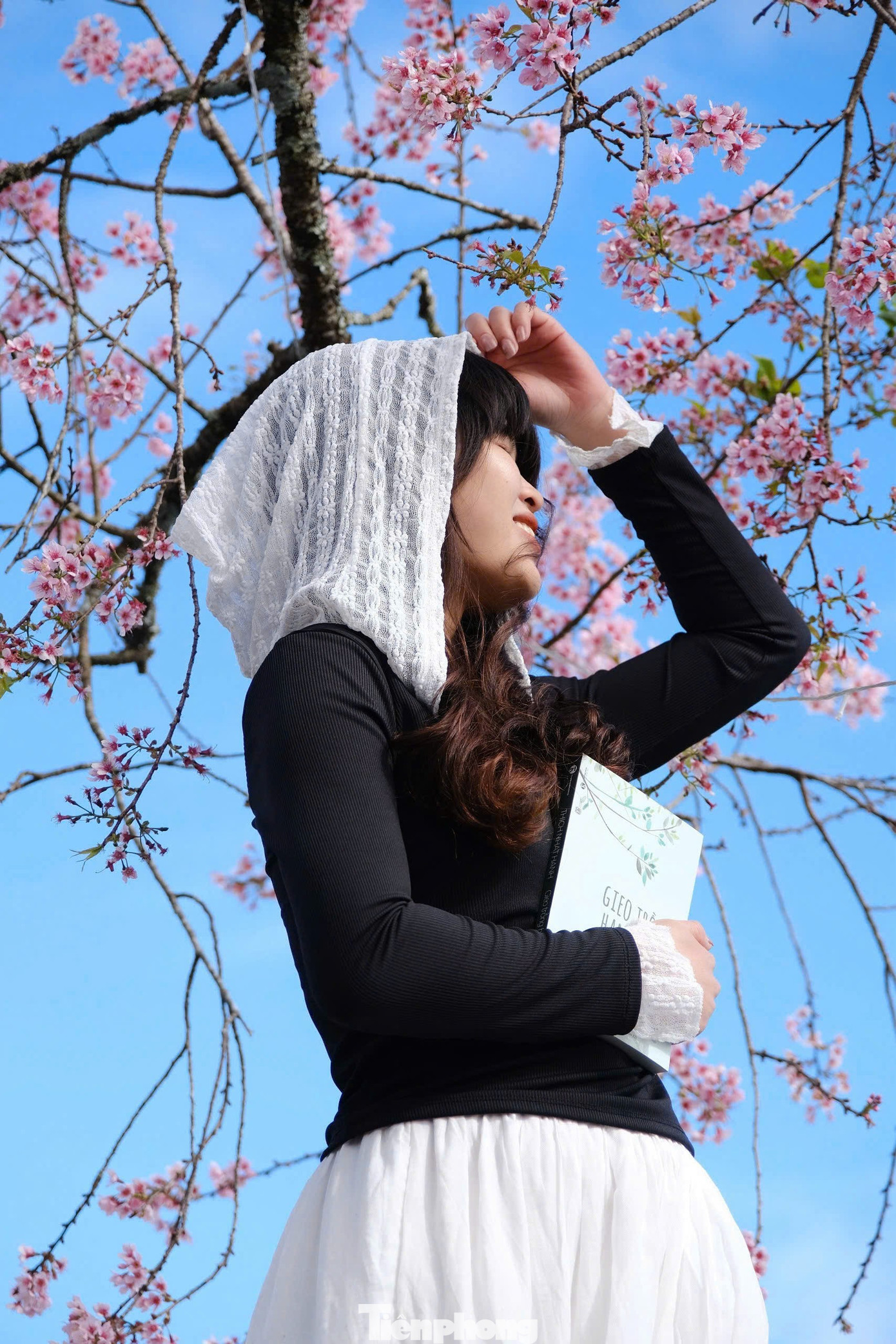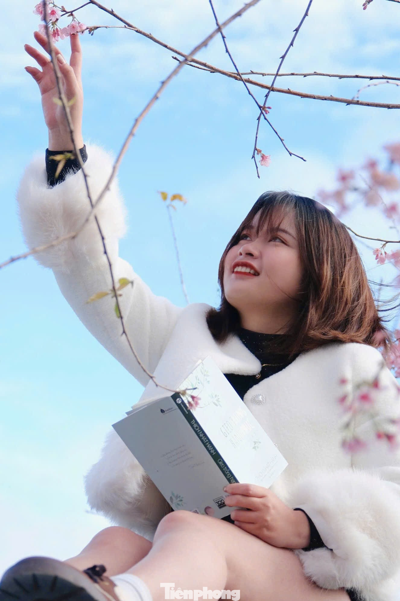 Bạn trẻ Nguyễn Như thả dáng check-in bên cây mai anh đào.
