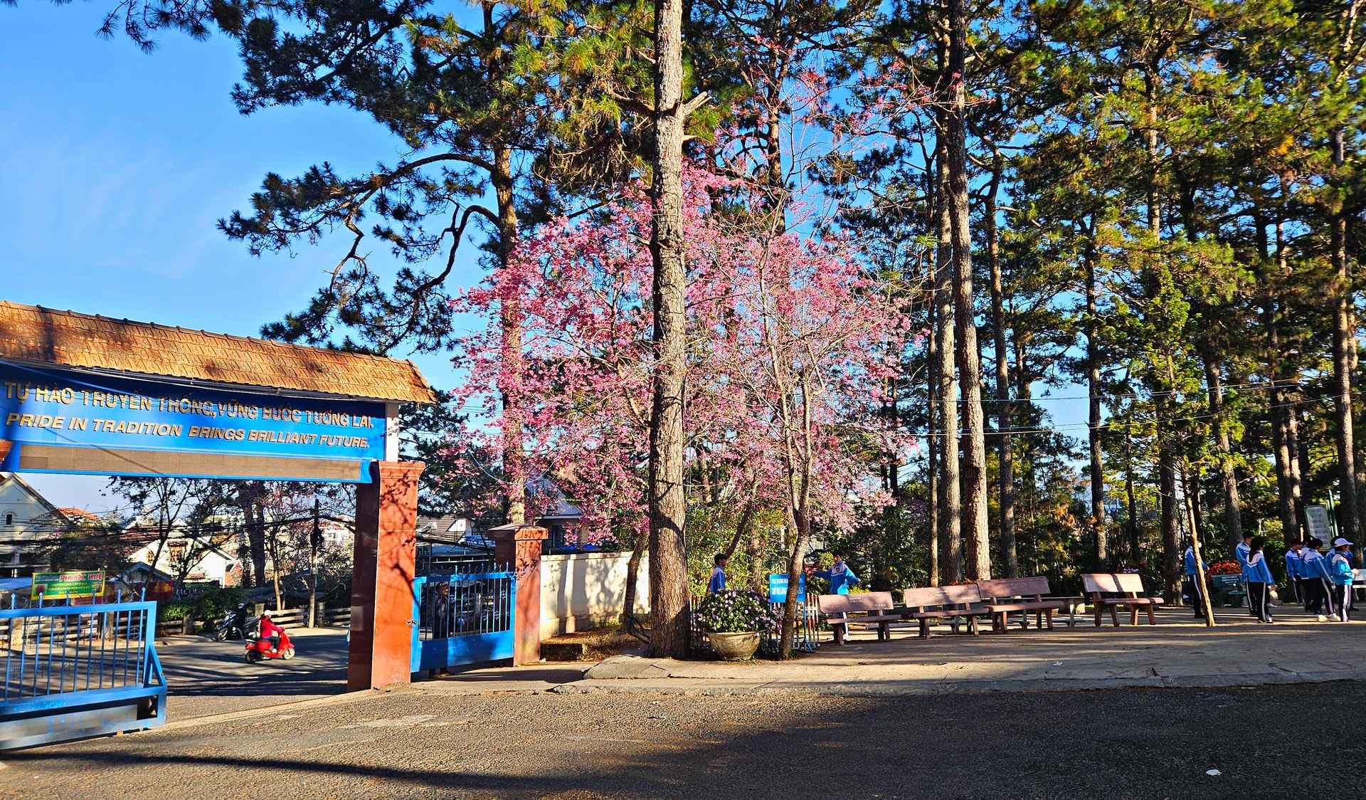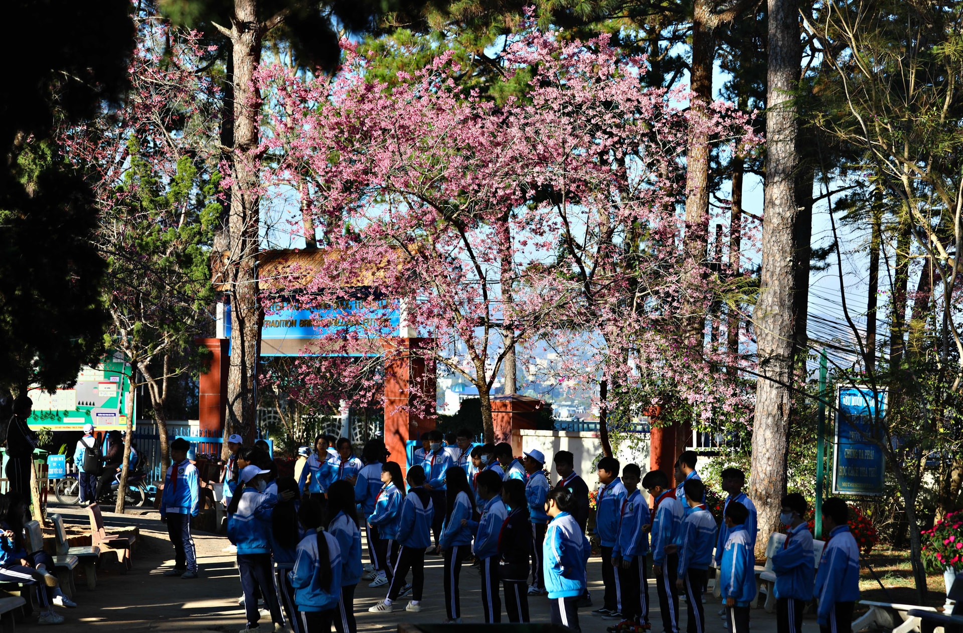Sắc hoa Mai anh đào sẽ để lại kỷ niệm đẹp đối với học sinh Trường THCS Phan Chu Trinh, phường Xuân Hương - Đà Lạt