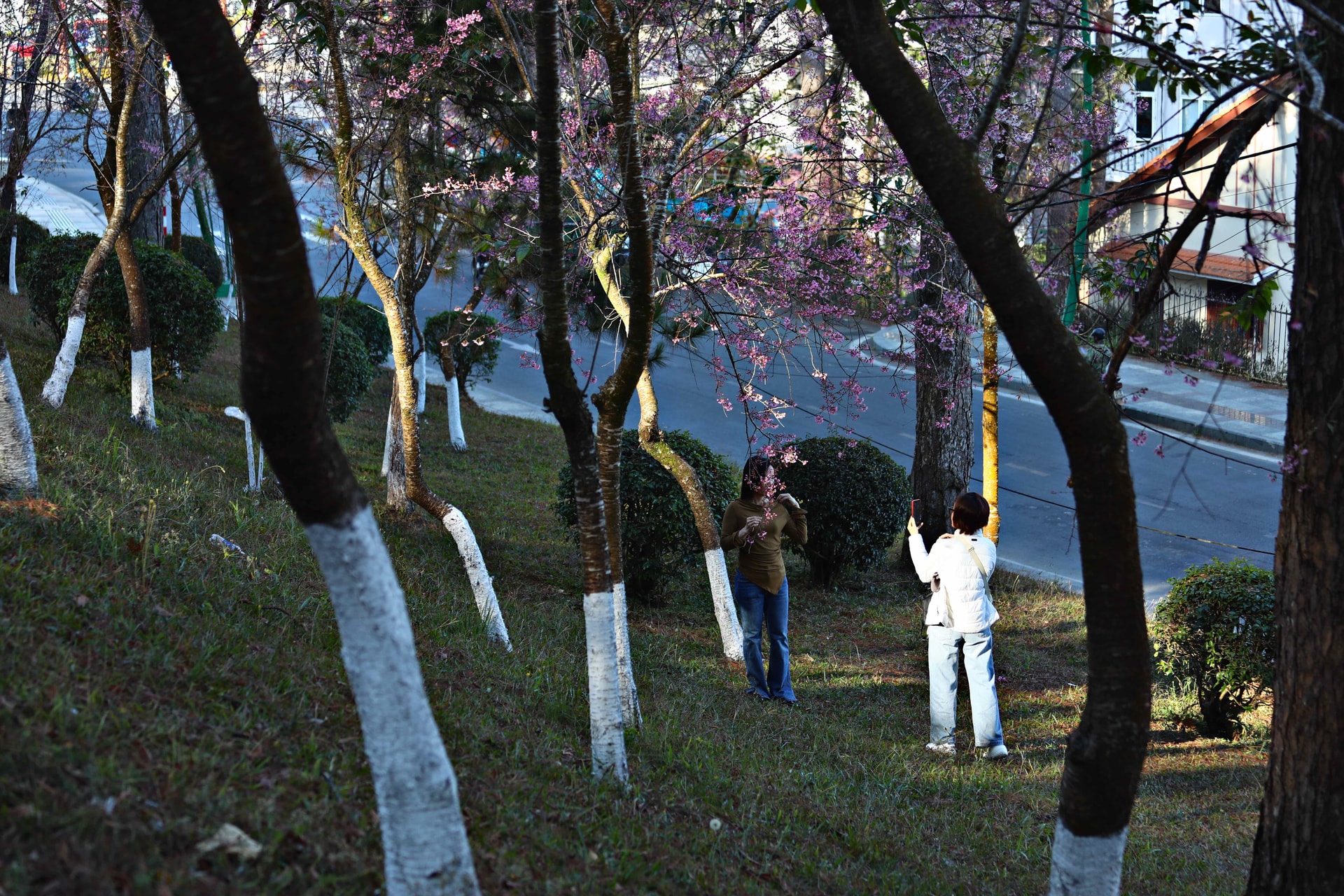 Dưới tán mai anh đào, nhịp sống dường như chậm lại, nhẹ nhàng và thư thái hơn