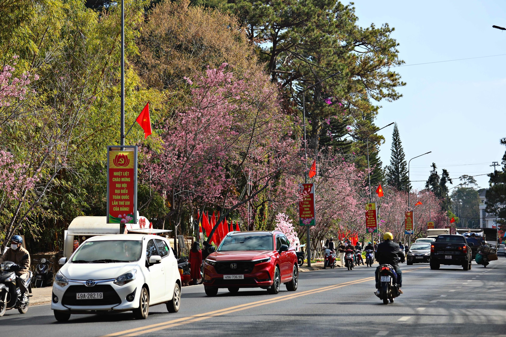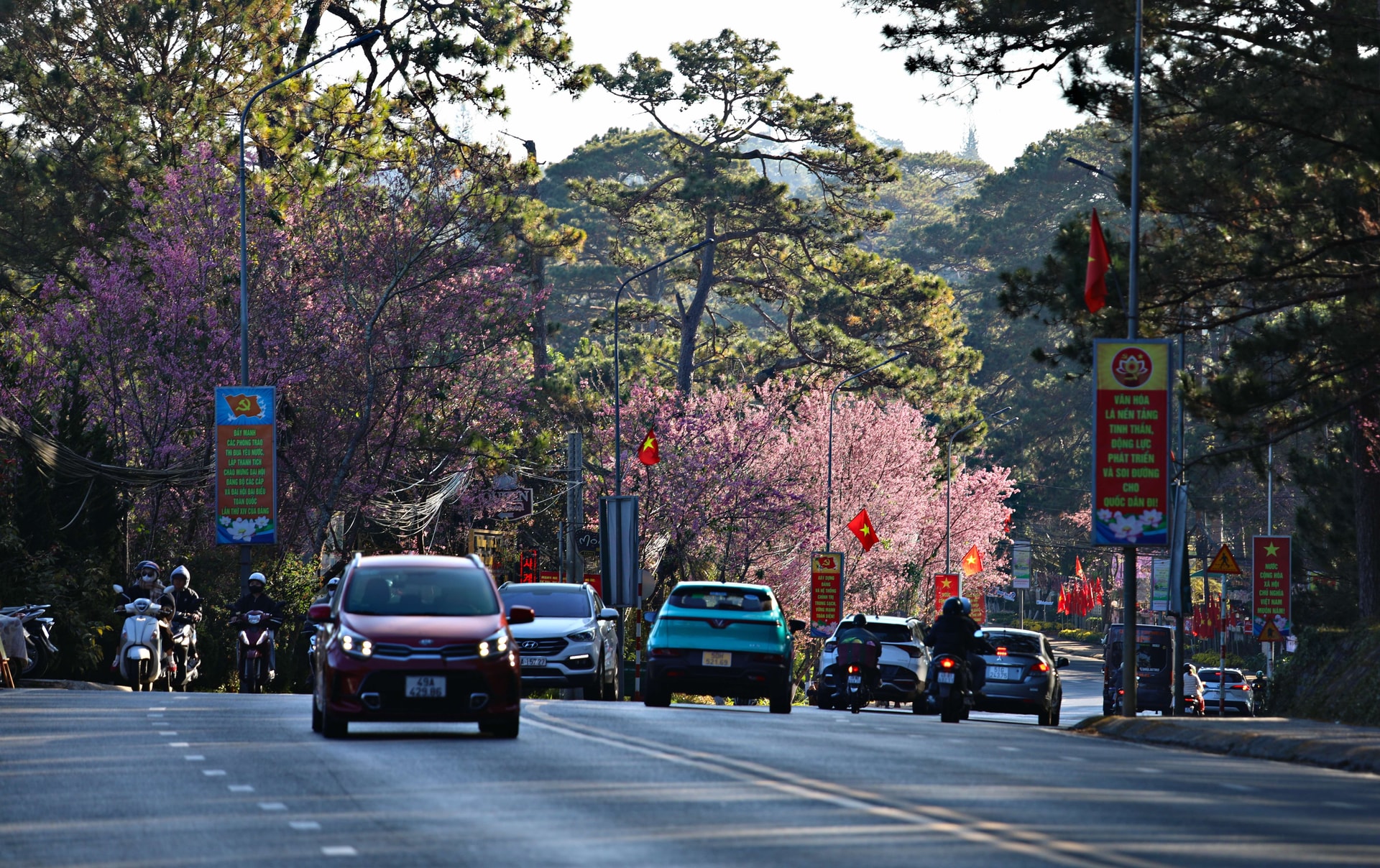 Thời điểm này được xem là đẹp nhất trong mùa hoa, khi nhiều cây cùng trổ bông, tạo thành những “con đường hoa” rực rỡ giữa lòng phố núi