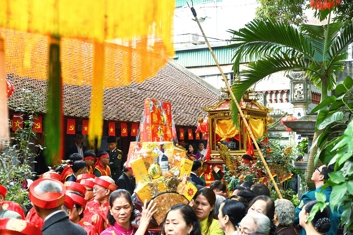 Nghi thức rước kiệu Thành Hoàng làng được tổ chức trang nghiêm, thành kính. Ảnh: Phạm Sỹ.