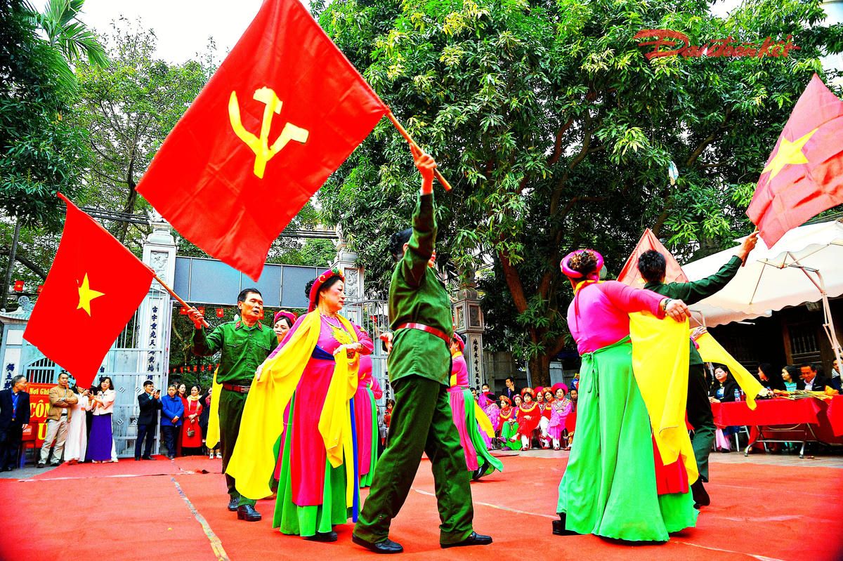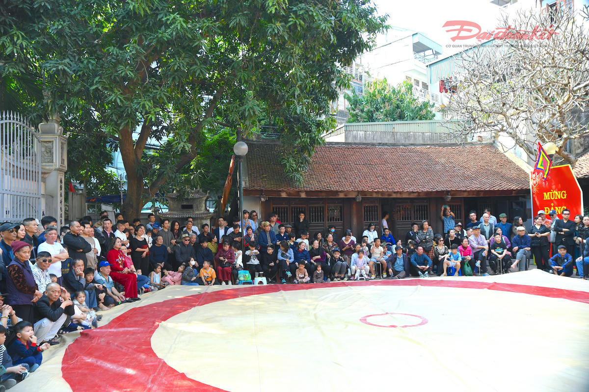 Không gian Lễ hội vật truyền thống làng Mai Động rộn ràng, rực rỡ trong những ngày đầu xuân. Ảnh: Phạm Sỹ.